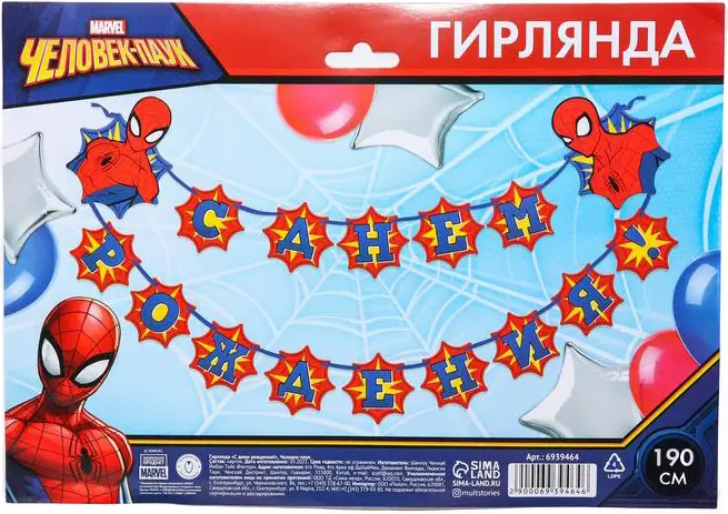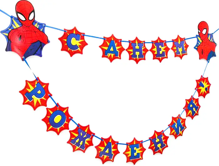 Гирлянда Страна Карнавалия С Днем Рождения Человек-паук, 190 см
