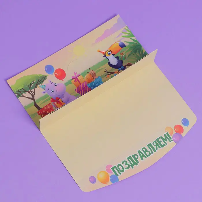 Остановите свой выбор на конверте со стильным дизайном и Ваш подарок не останется незамеченным. Отлично подойдёт на праздничное мероприятие!