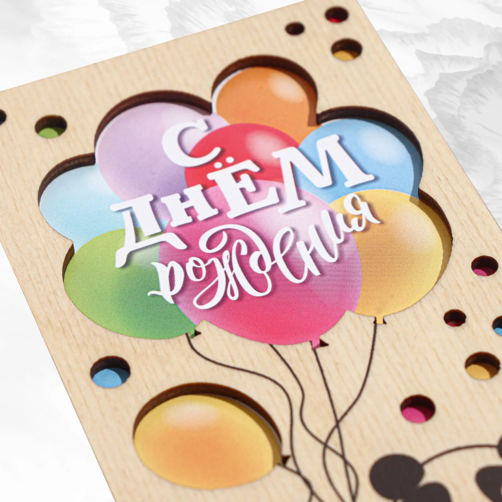 Конверт Страна Карнавалия С Днём Рождения панда для денег с деревянным элементом
