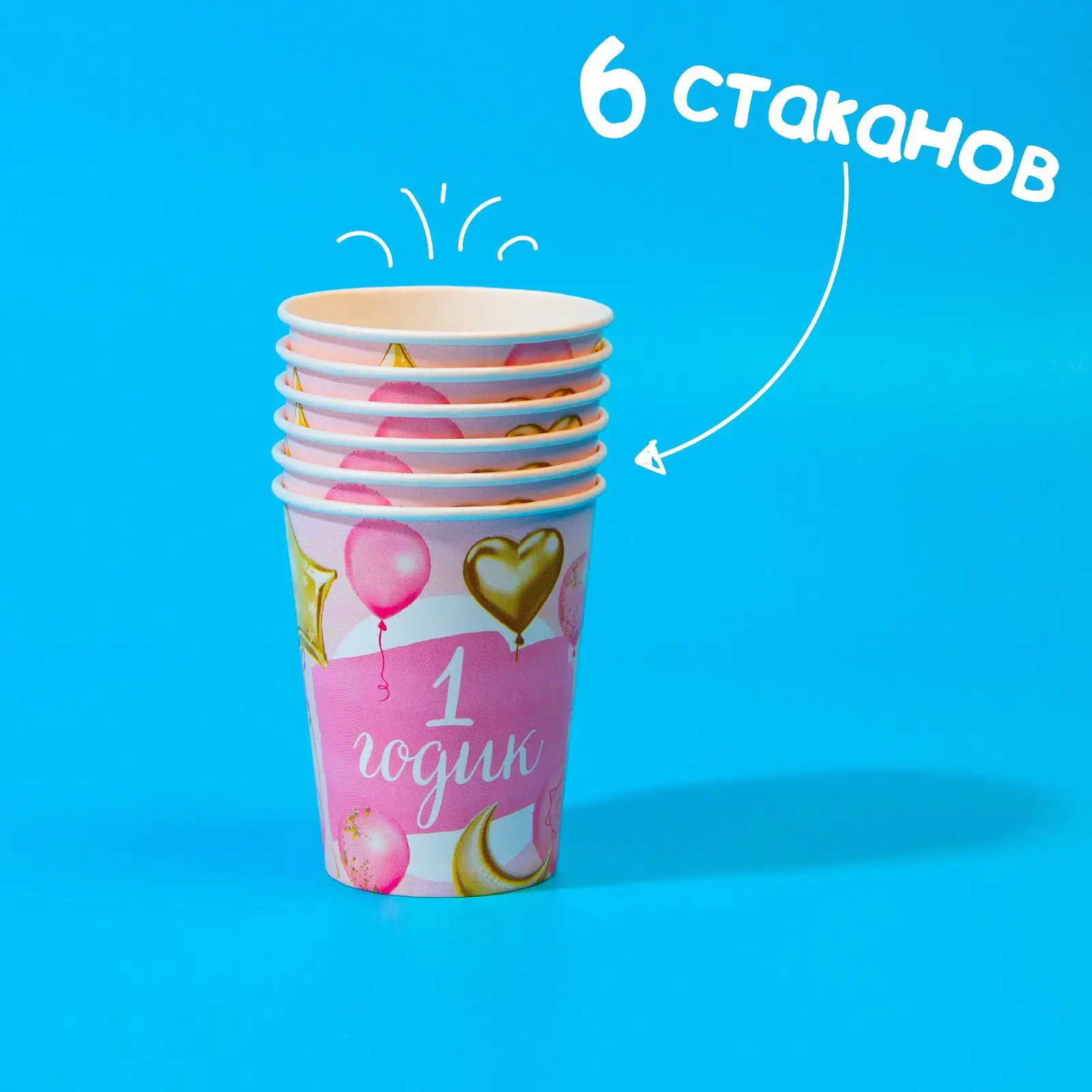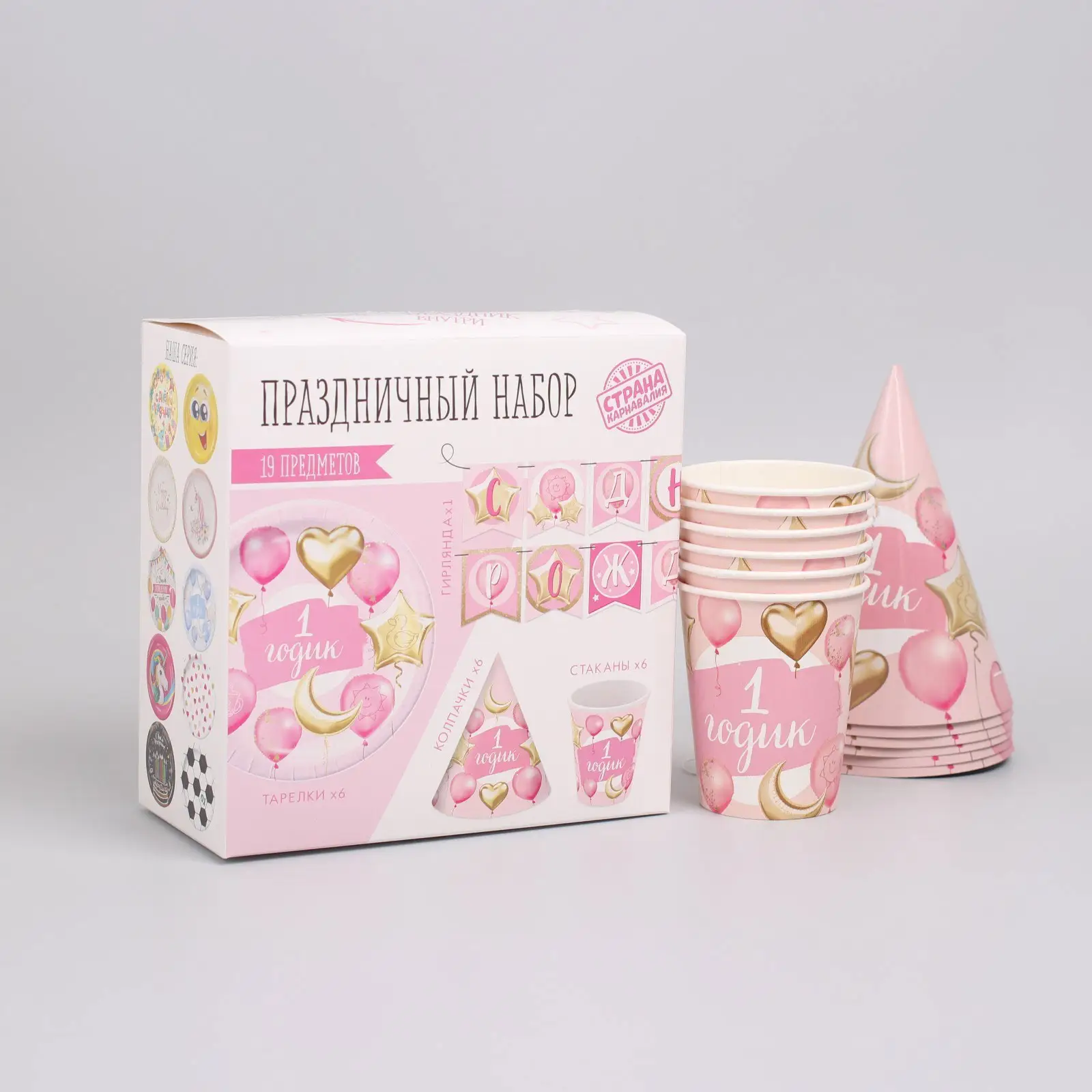 Набор бумажной посуды Страна Карнавалия 1 годик, девочки, шары фольга