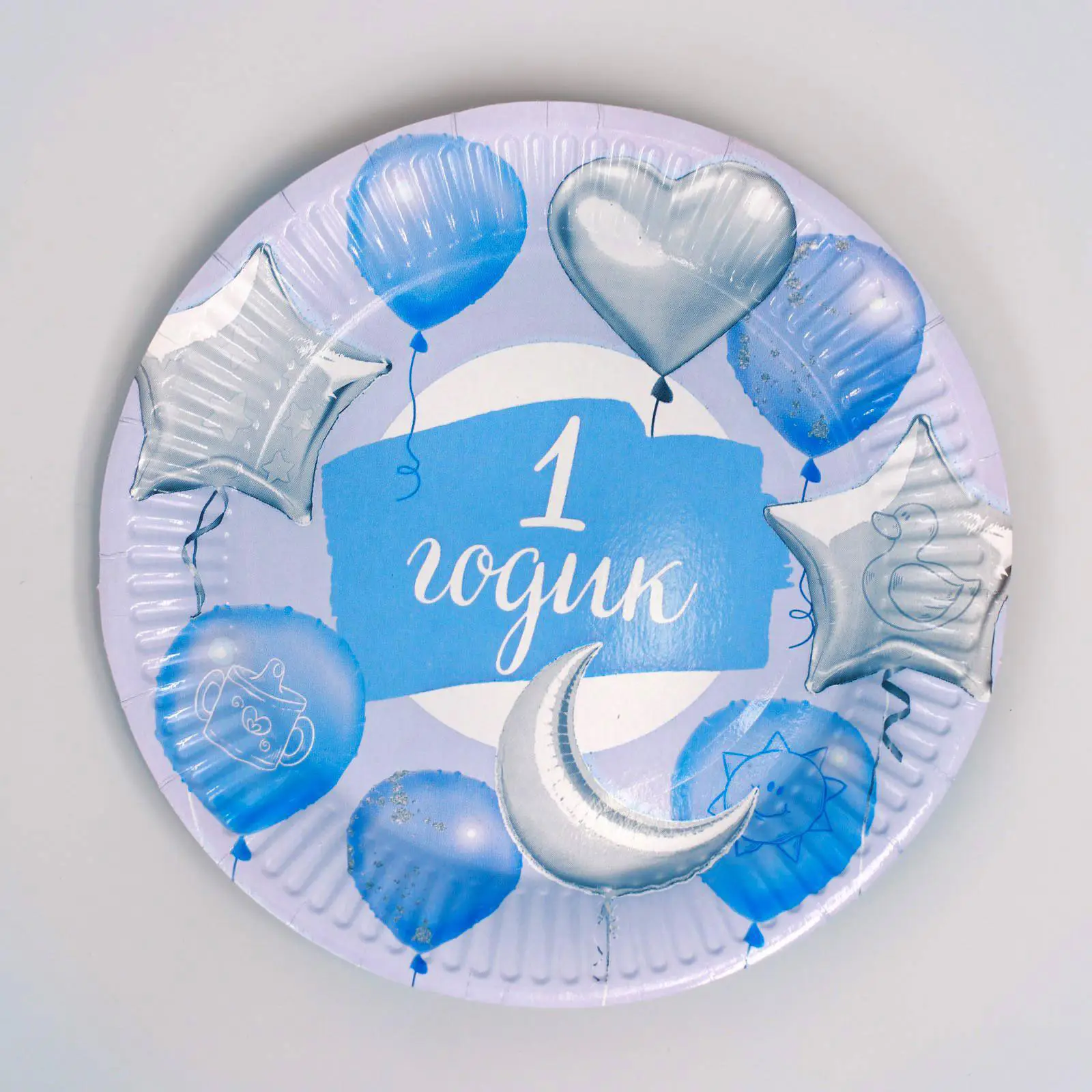 Набор бумажной посуды Страна Карнавалия 1 годик, мальчики, шары фольга