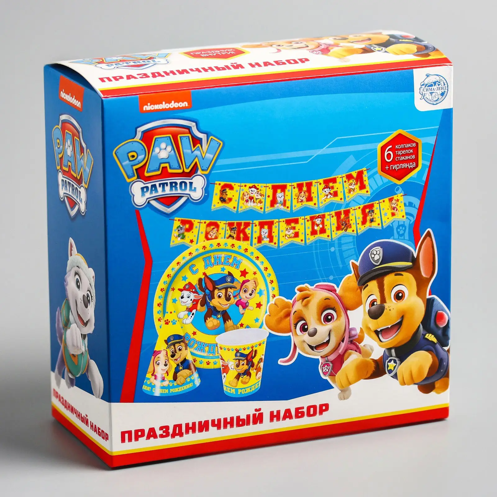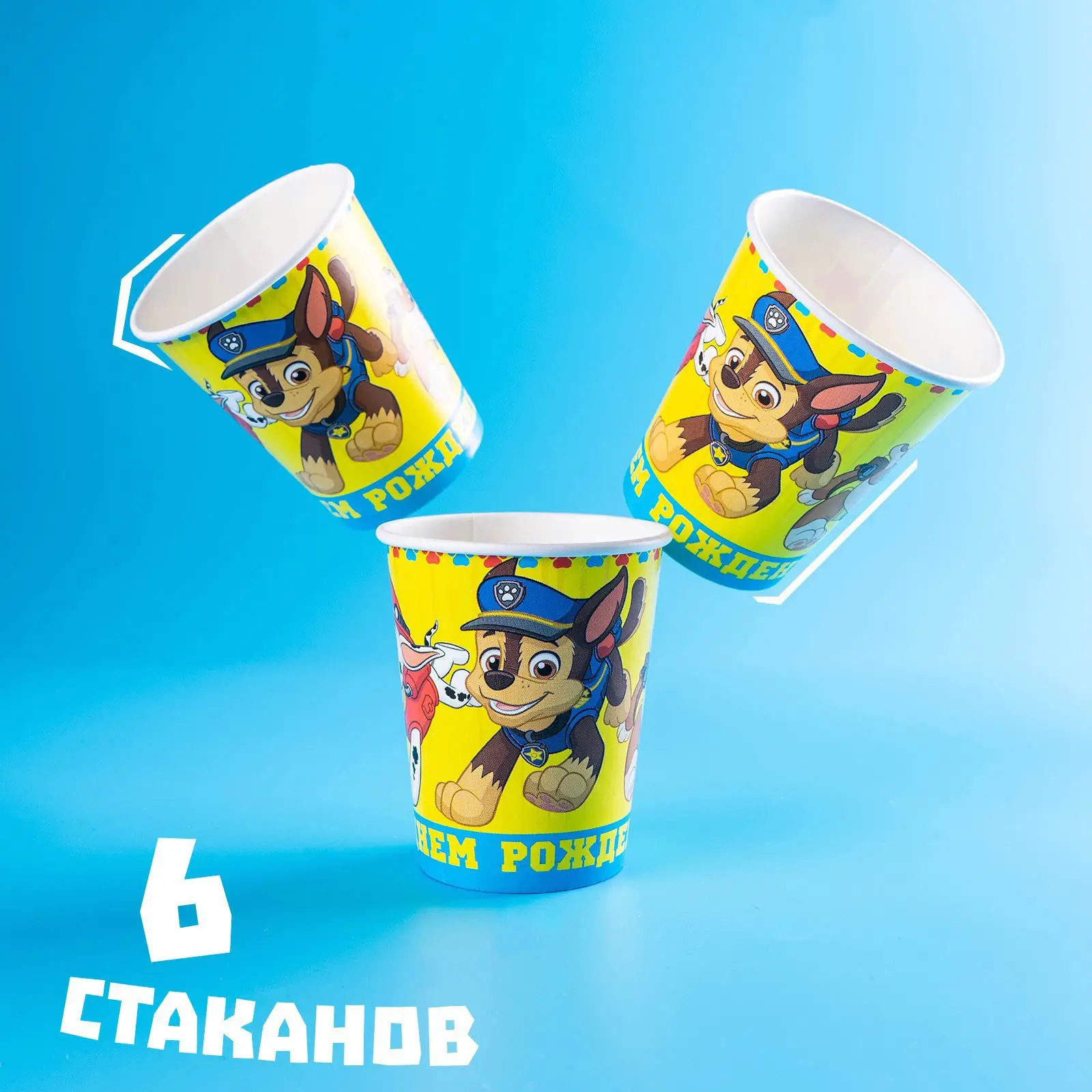 Набор бумажной посуды Страна Карнавалия С днем рождения!, команда, Щенячий патруль, на 6 персон