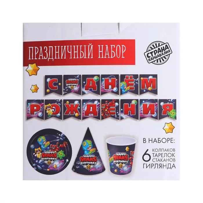 Набор бумажной посуды Страна Карнавалия С днём рождения stars