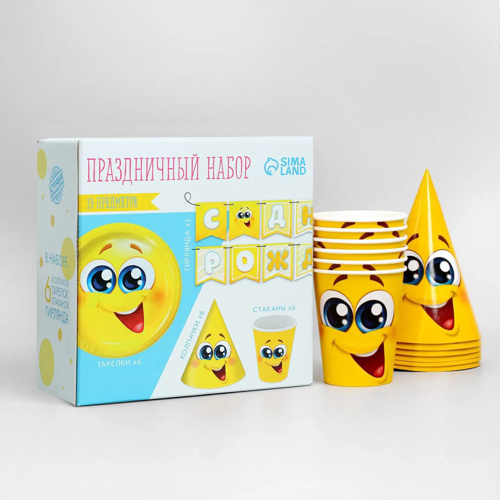 Набор бумажной посуды Страна Карнавалия Смайлы с улыбкой