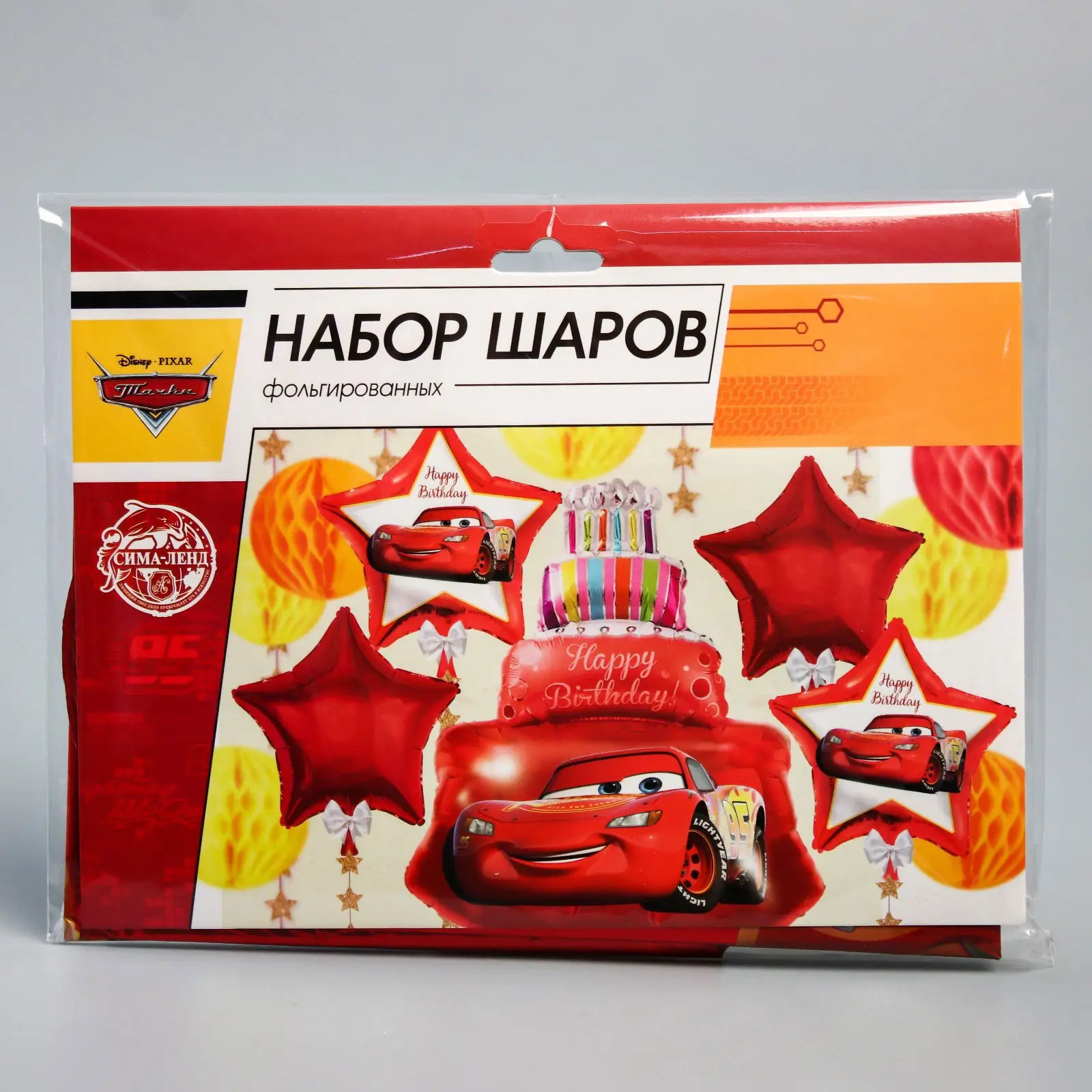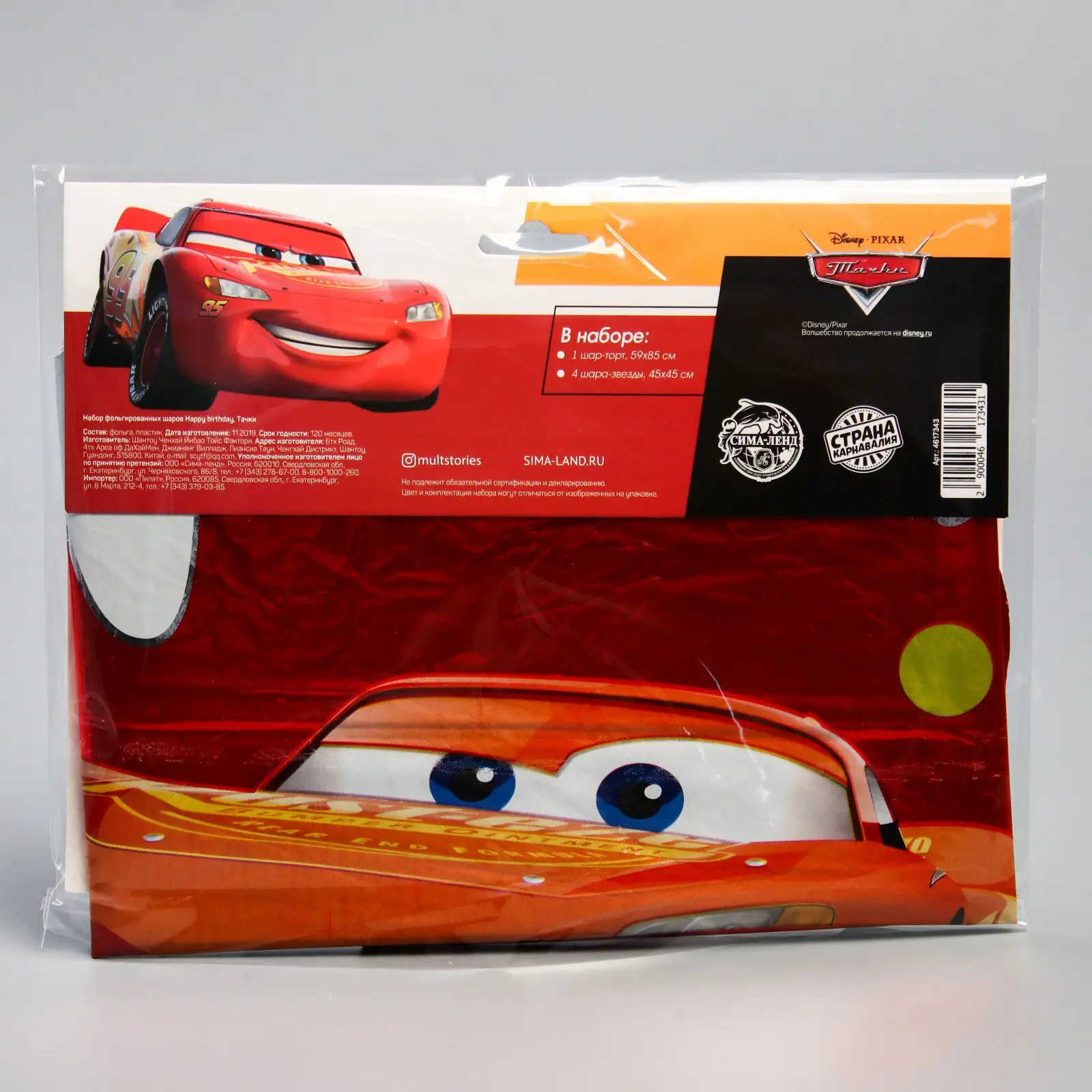 Набор фольгированных шаров Страна Карнавалия Happy Birthday, Тачки, 4 звезды, торт