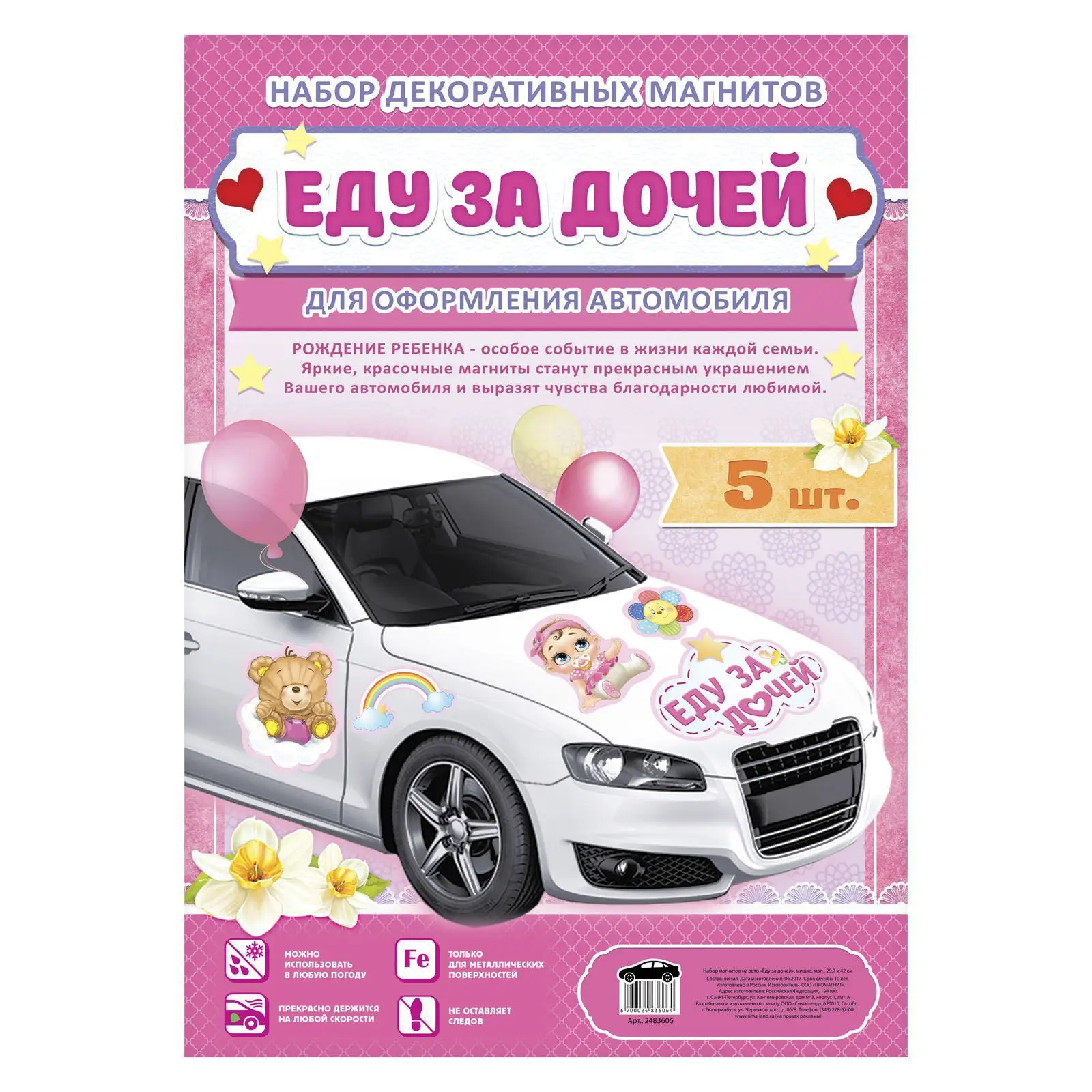 Набор магнитов для оформления автомобиля создан специально для того, чтобы вы могли выразить благодарность любимой и поделиться с окружающими своим счастьем. Элементы изготовлены из мягкого эластичного материала. Изделия легко крепятся на кузов, а после использования ими можно украсить любую металлическую поверхность. Дарите родным улыбки и радость! В наборе 5 штук.