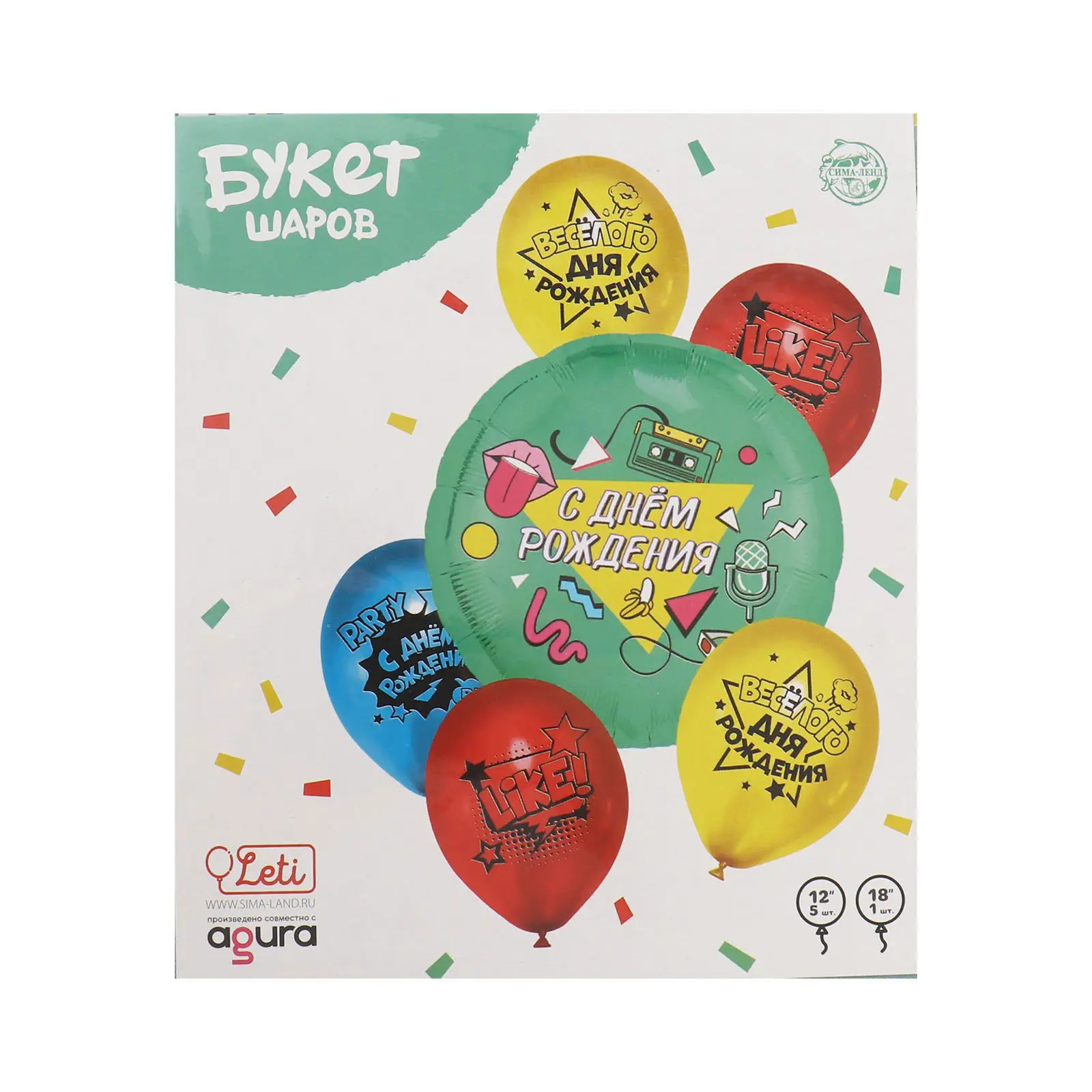 Набор шаров Страна Карнавалия С днем рождения, диско, фольга, латекс, 6 шт