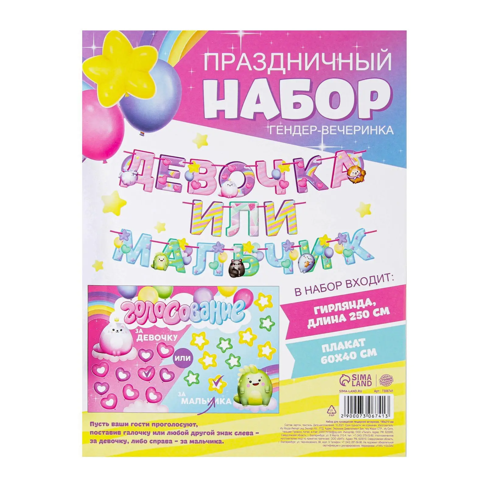 Набор Страна Карнавалия для проведения гендерной вечеринки Девочка или мальчик, 21х16 см