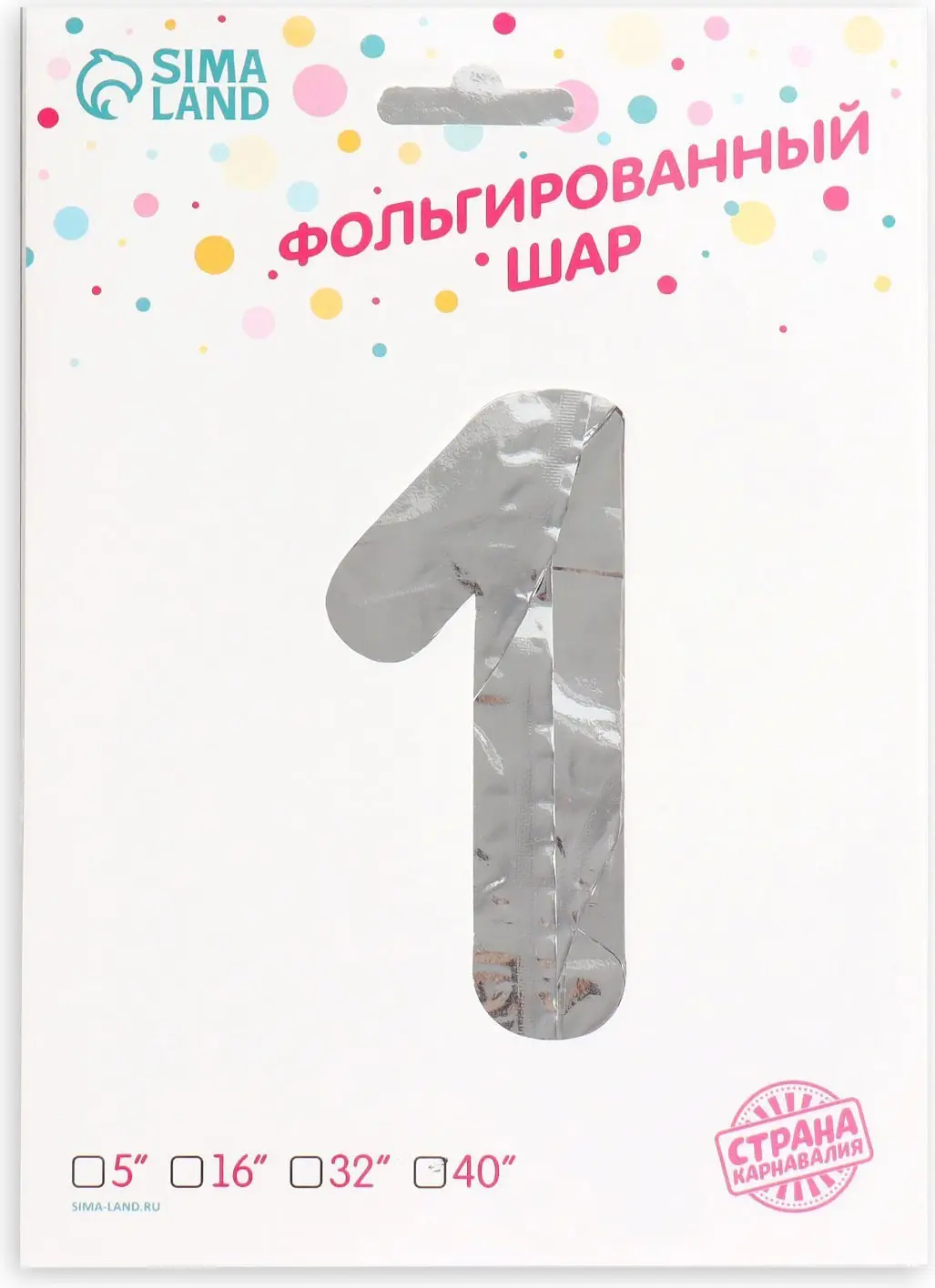 Шар Страна Карнавалия фольгированный Цифра 1, серебряный, 40"