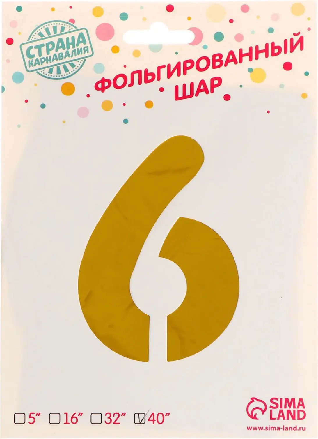 Шар Страна Карнавалия фольгированный цифра 6, золотой, 40"