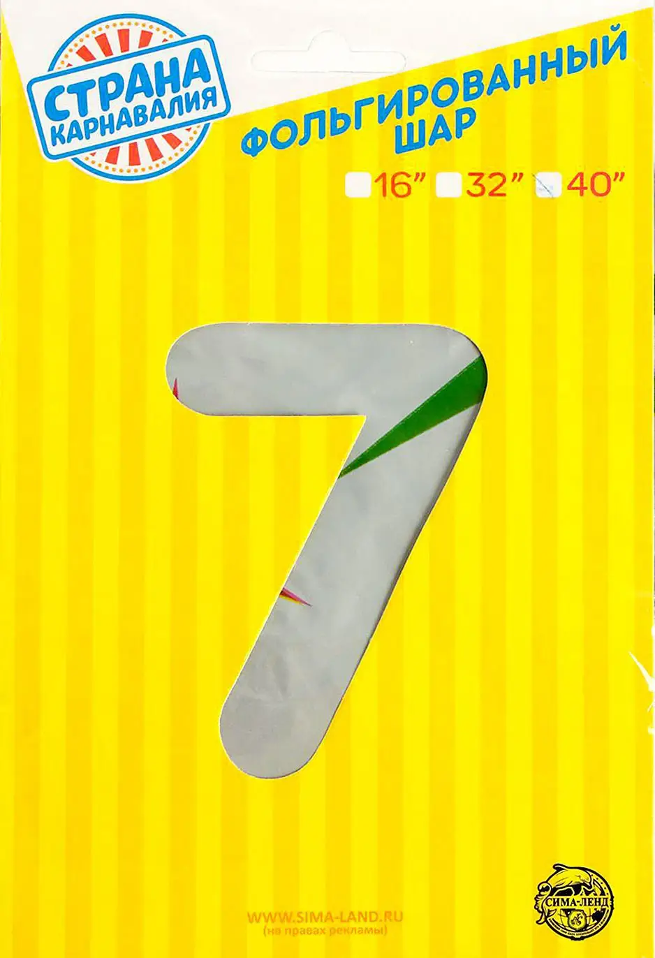 Шар Страна Карнавалия фольгированный цифра 7, разноцетные звезды, 40"