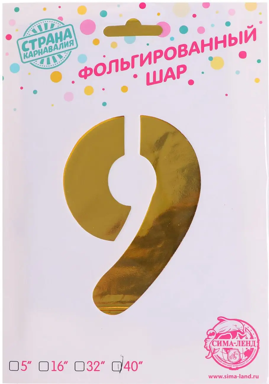 Шар Страна Карнавалия фольгированный цифра 9, золотой, 40"