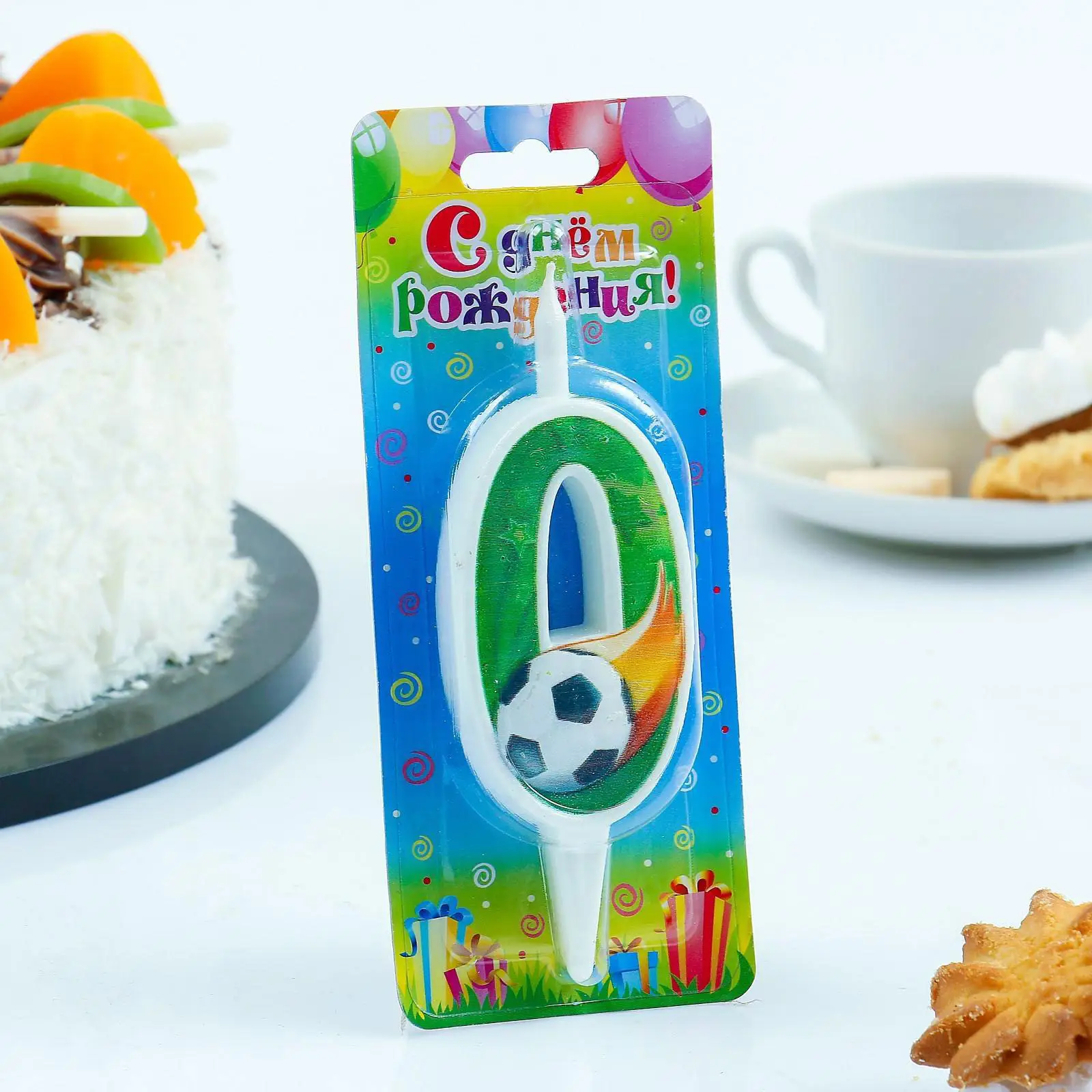 Свеча Страна Карнавалия для торта Футбольная цифра 0 зелёная, 12,5 см