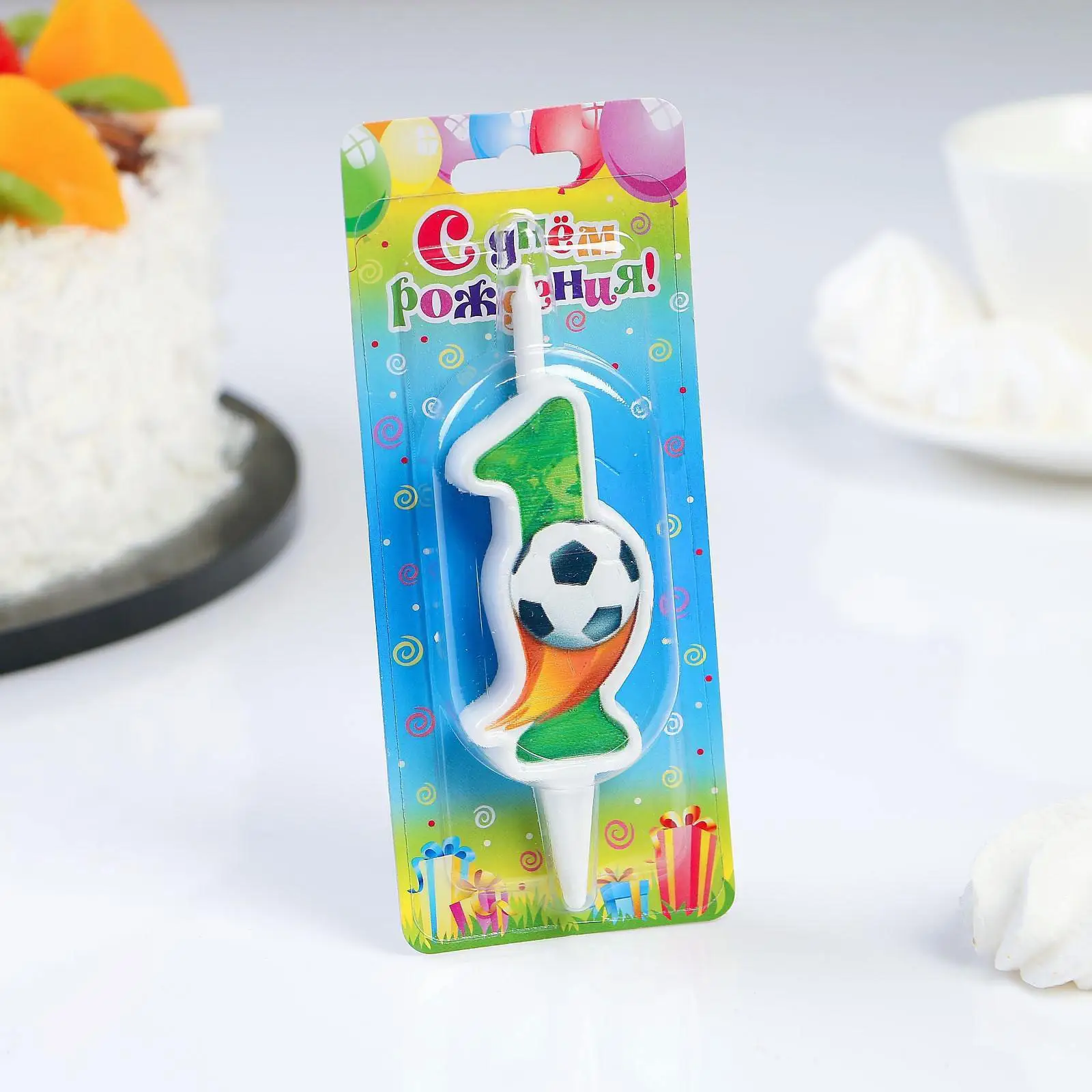 Свеча Страна Карнавалия для торта Футбольная цифра 1 зелёная, 12,5 см