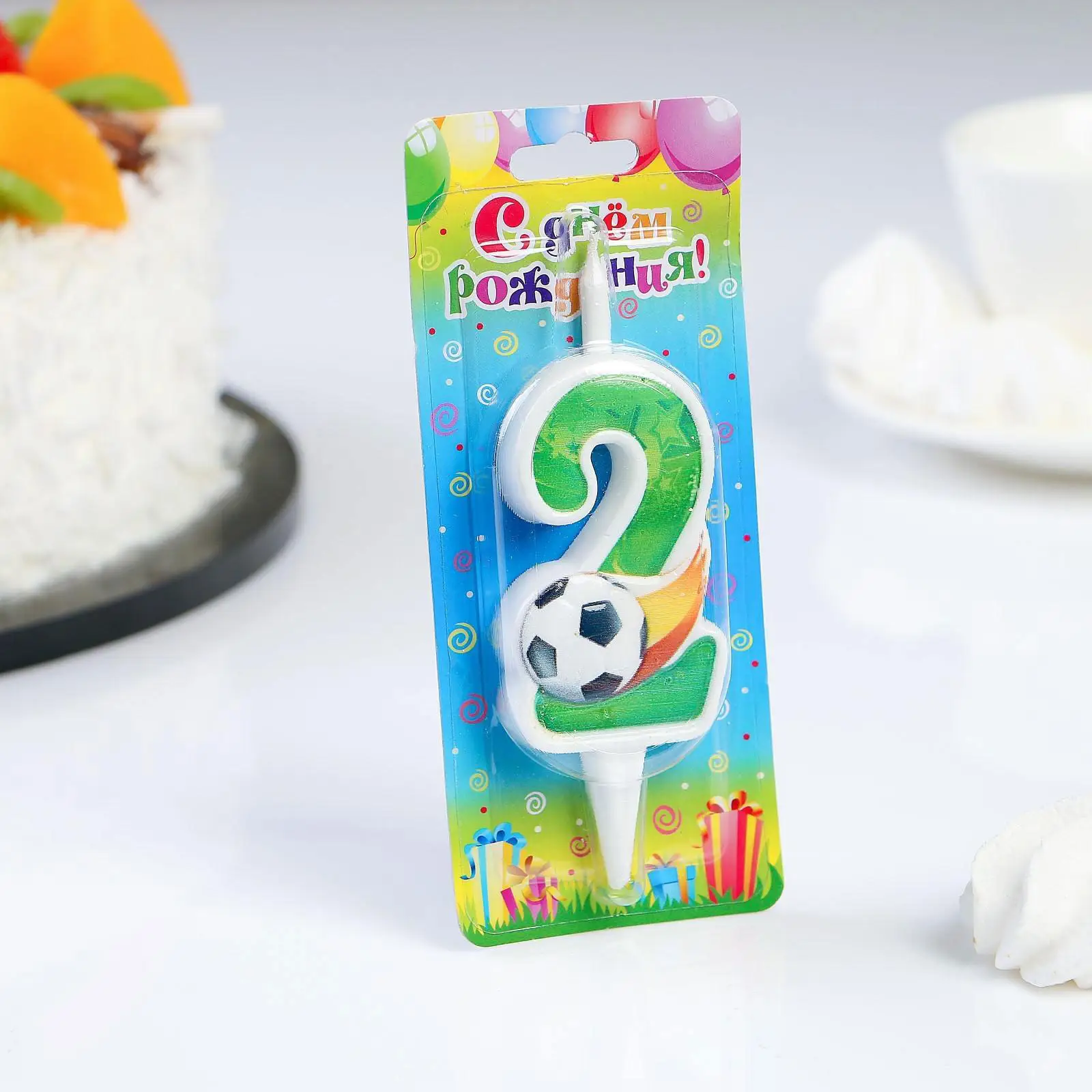 Свеча Страна Карнавалия для торта Футбольная цифра 2 зелёная, 12,5 см