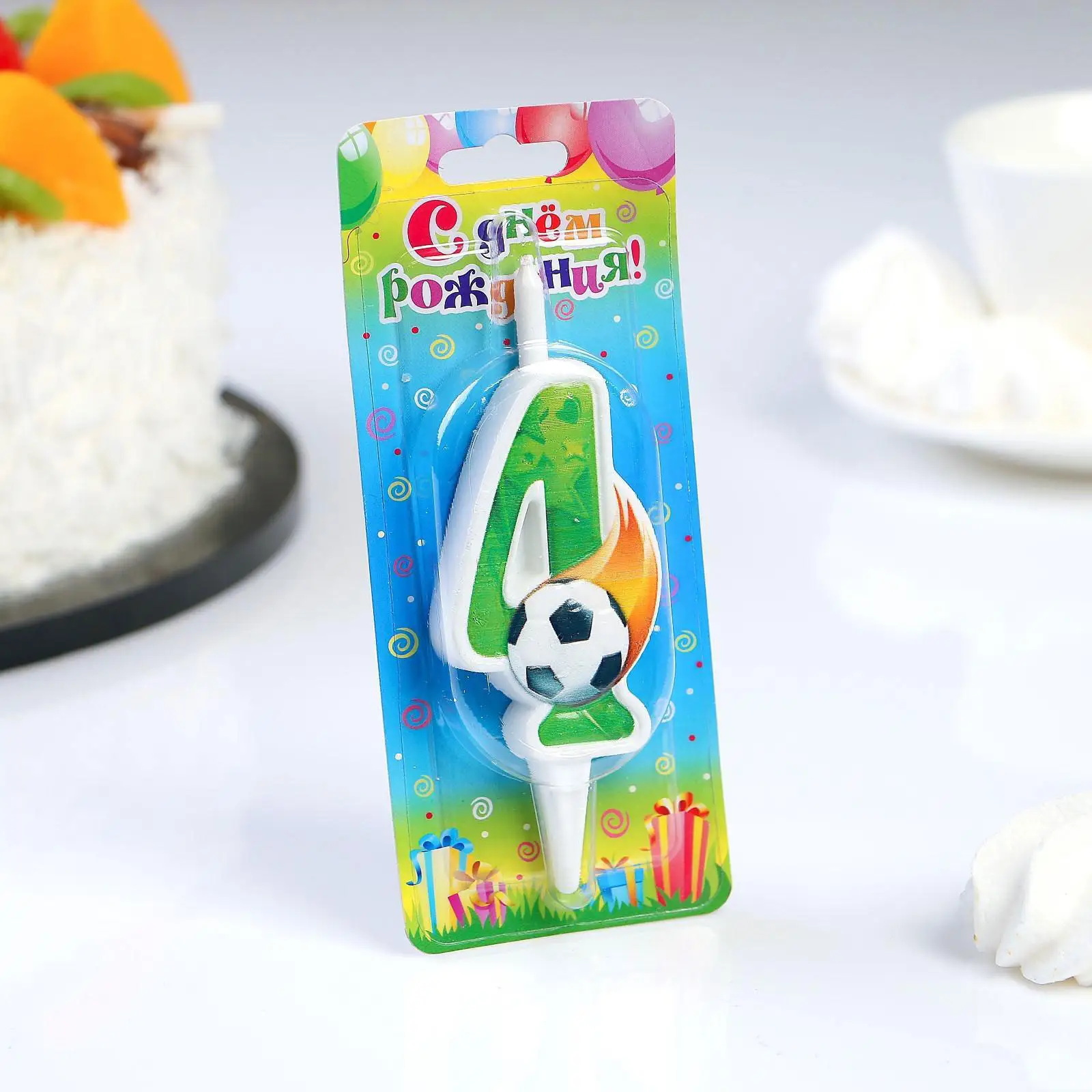 Свеча Страна Карнавалия для торта Футбольная цифра 4 зелёная, 12,5 см