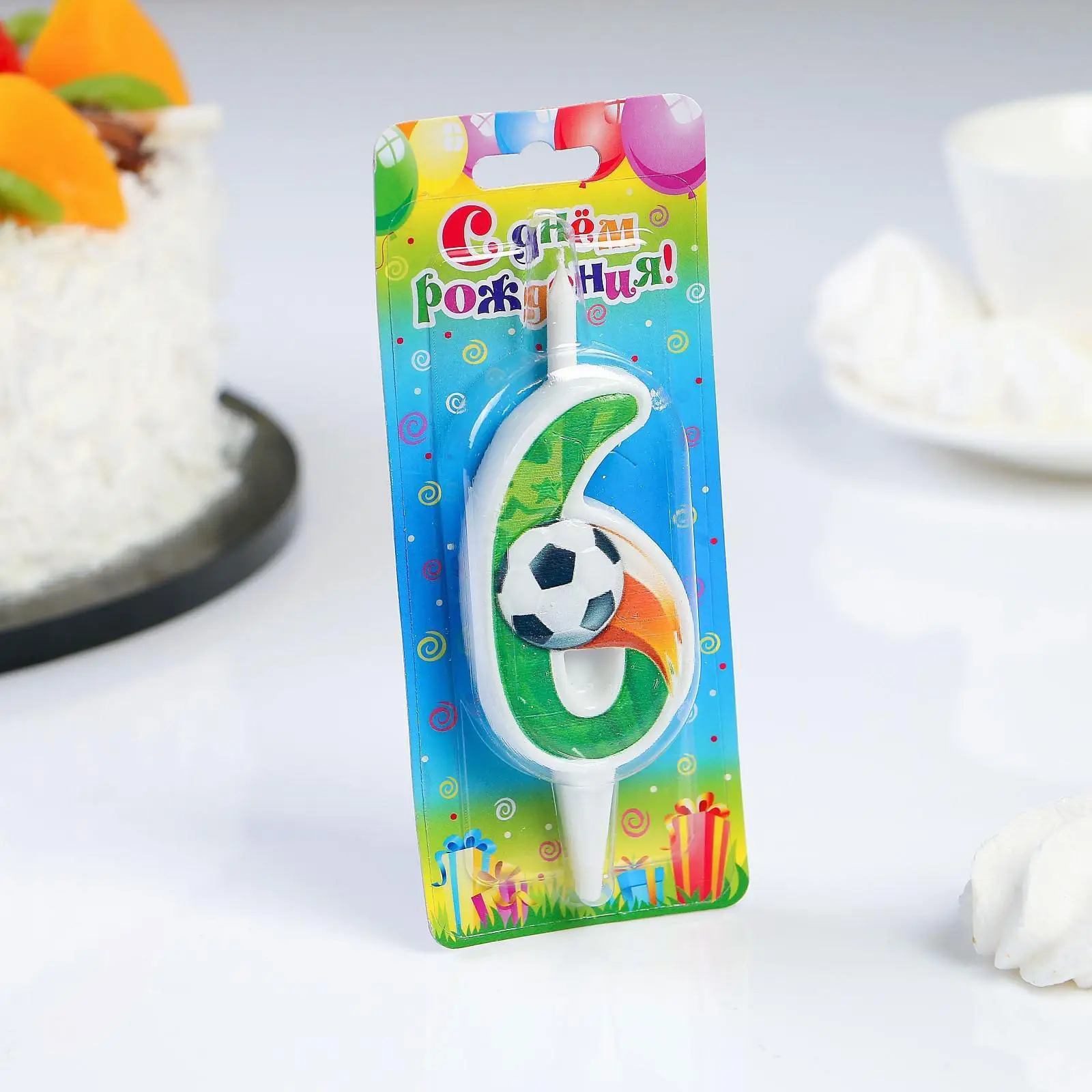 Свеча Страна Карнавалия для торта Футбольная цифра 6 зелёная, 12,5 см