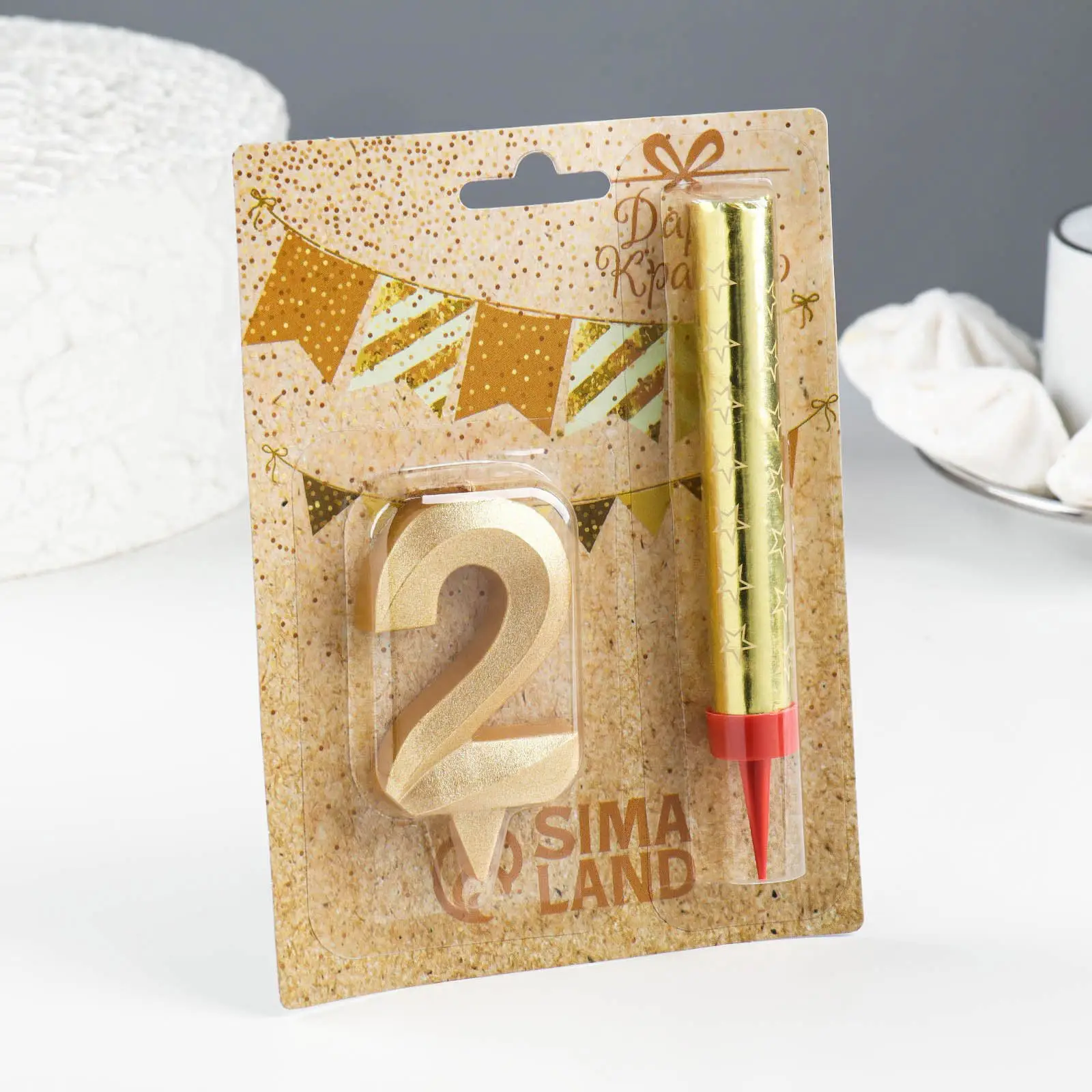 Свеча Страна Карнавалия для торта Грань + фонтан цифра 2, золотая