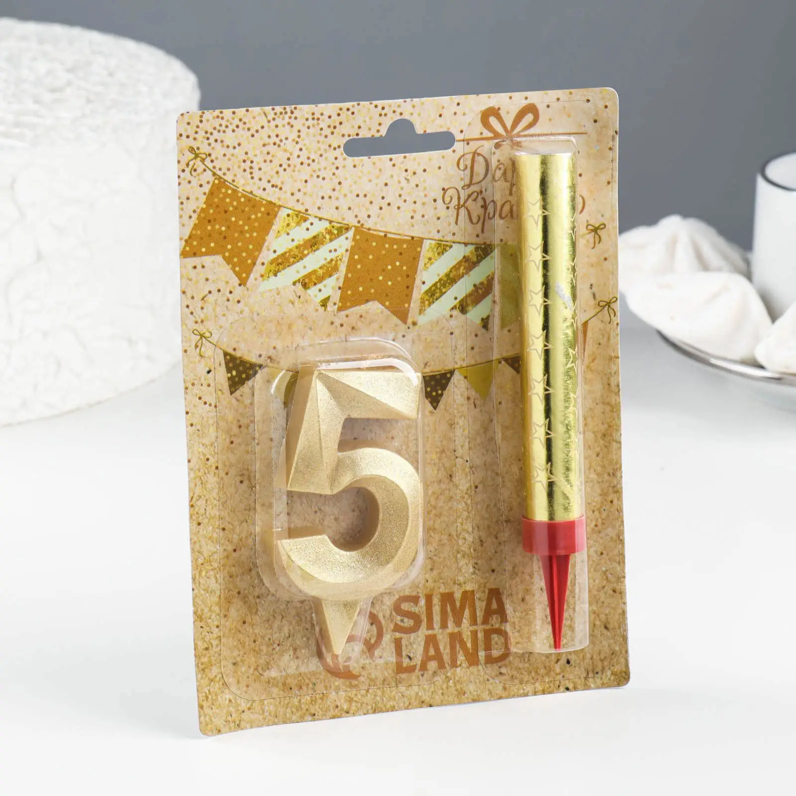 Свеча Страна Карнавалия для торта Грань + фонтан цифра 5, золотая