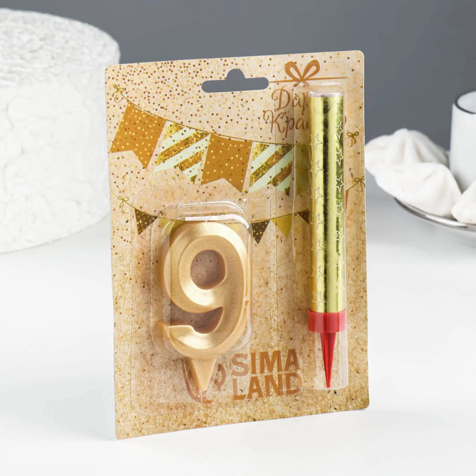 Свеча Страна Карнавалия для торта Грань + фонтан цифра 9, золотая