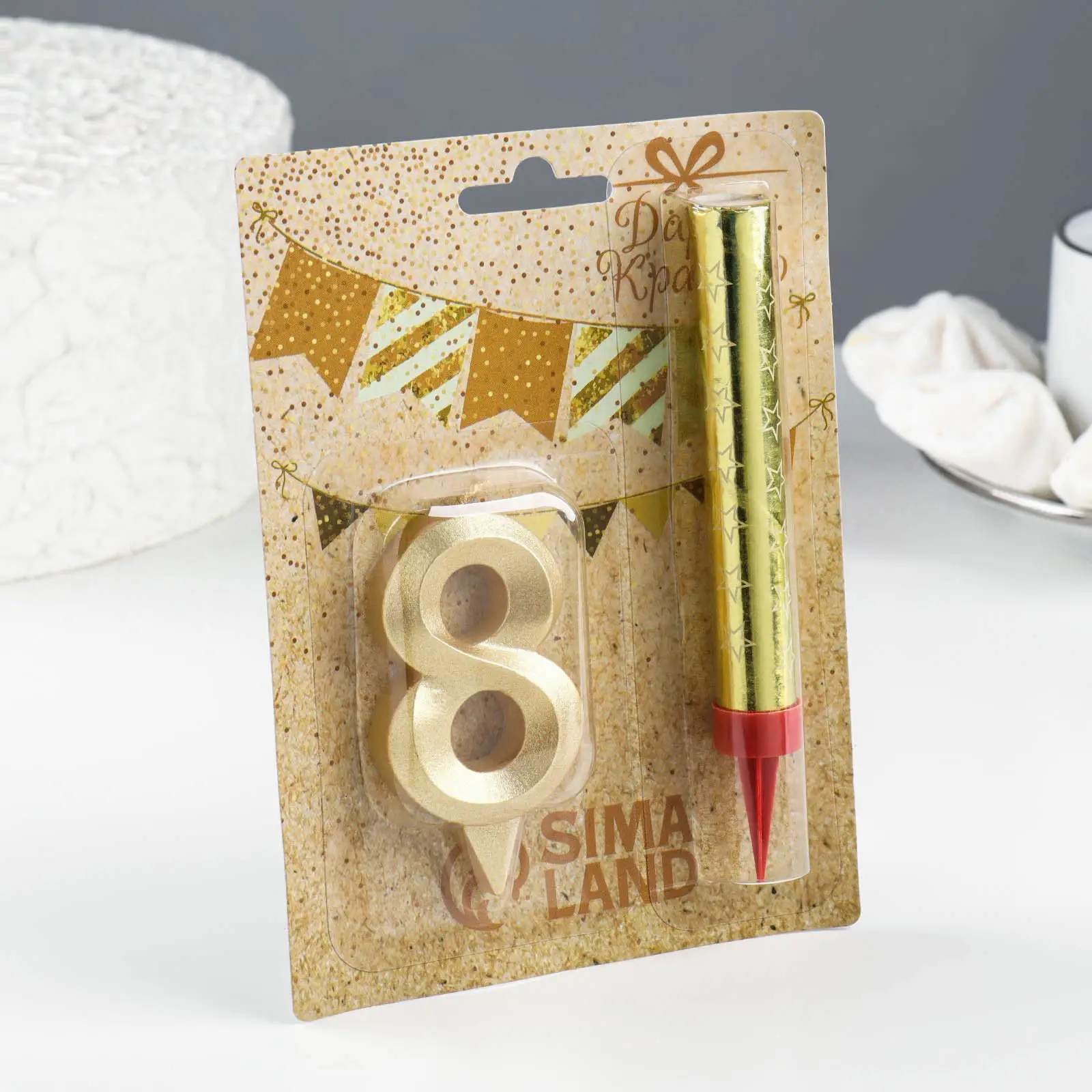 Свеча Страна Карнавалия для торта цифра Грань + фонтан цифра 8, золотая