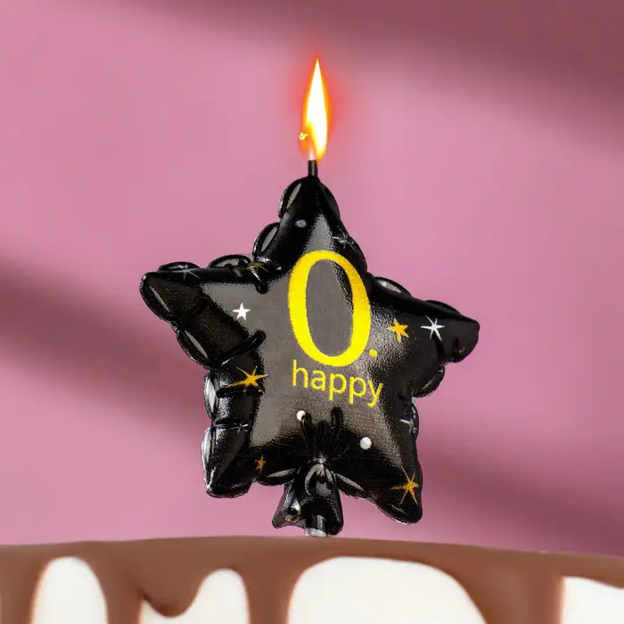 Свеча Страна Карнавалия в торт на шпажке воздушный шарик звезда цифра 0, 11х5 см, черная с золотом
