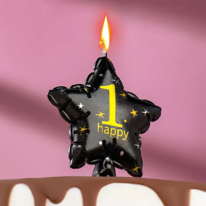 Свеча Страна Карнавалия в торт на шпажке воздушный шарик звезда, цифра 1, 11х5 см, черная с золотом