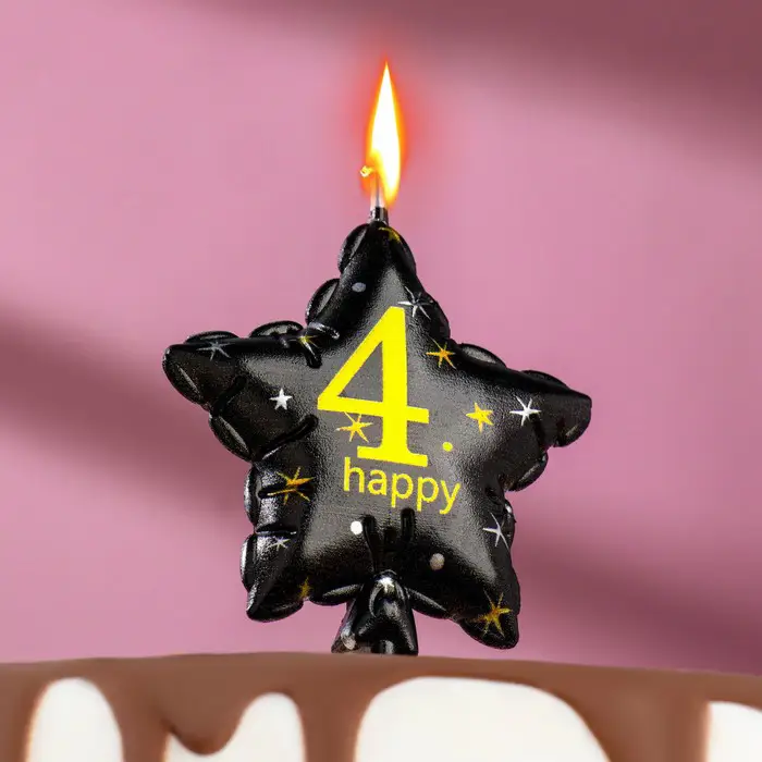 Свеча Страна Карнавалия в торт на шпажке воздушный шарик звезда цифра 4, 11х5 см, черная с золотом