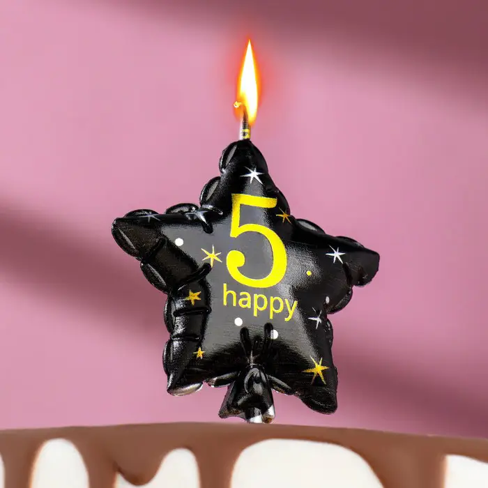 Свеча Страна Карнавалия в торт на шпажке воздушный шарик звезда цифра 5, 11х5 см, черная с золотом