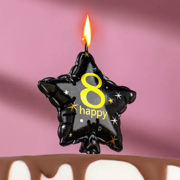 Свеча Страна Карнавалия в торт на шпажке воздушный шарик звезда, цифра 8, 11х5 см, черная с золотом