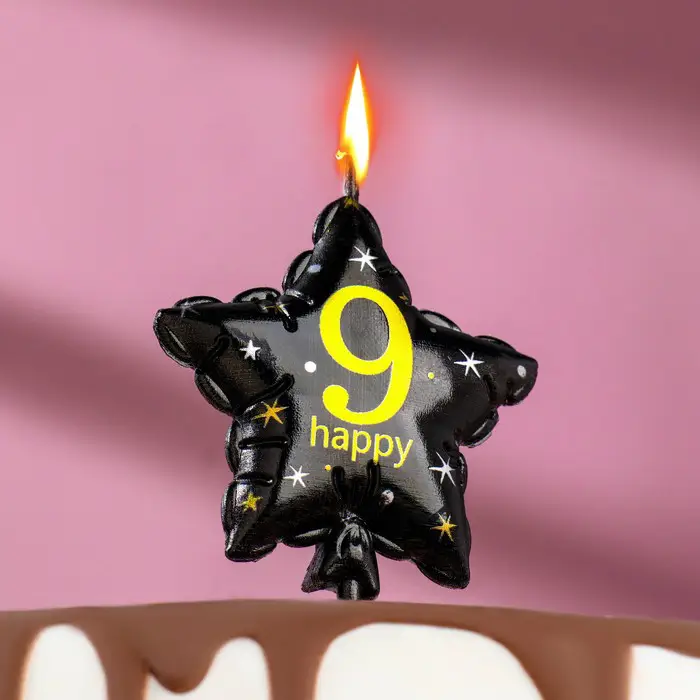 Свеча Страна Карнавалия в торт на шпажке воздушный шарик звезда цифра 9, 11х5 см, черная с золотом