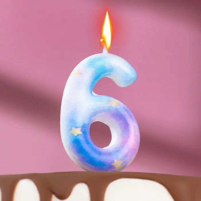 Свеча Страна Карнавалия в торт на шпажке Звездопад цифра 6, 5,5 см
