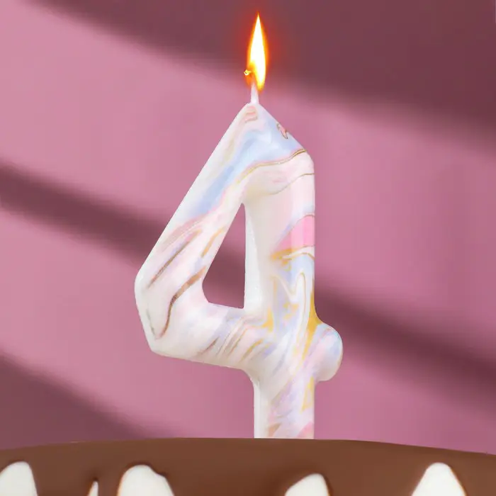 Свеча в торт Страна Карнавалия Белый мрамор цифра 4, гигант, 12,5 см