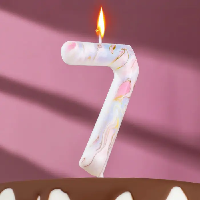 Свеча в торт Страна Карнавалия Белый мрамор цифра 7, гигант, 12,5 см