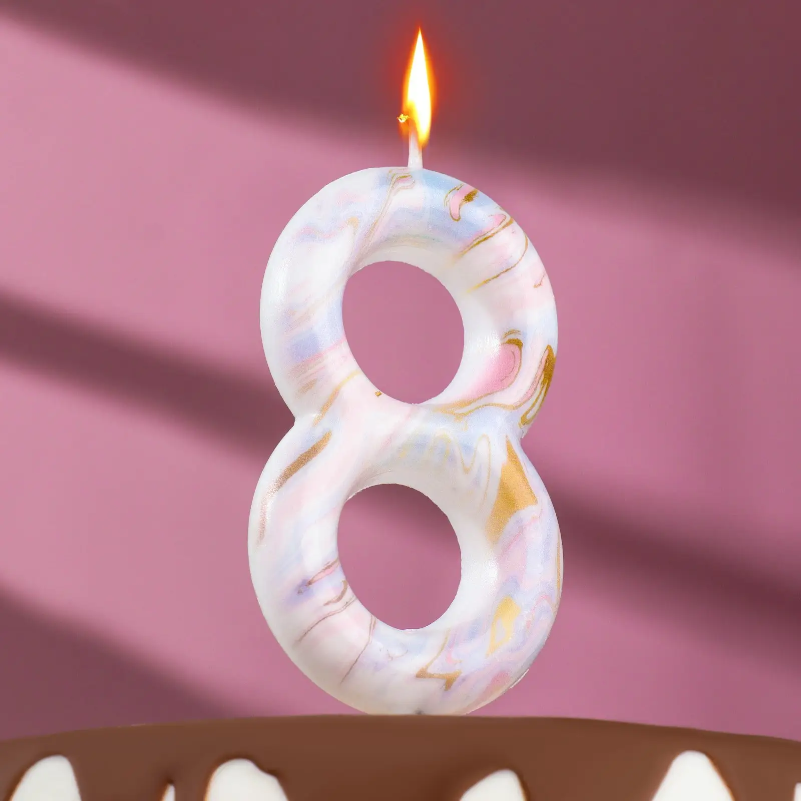 Свеча в торт Страна Карнавалия Белый мрамор цифра 8, гигант, 12,5 см