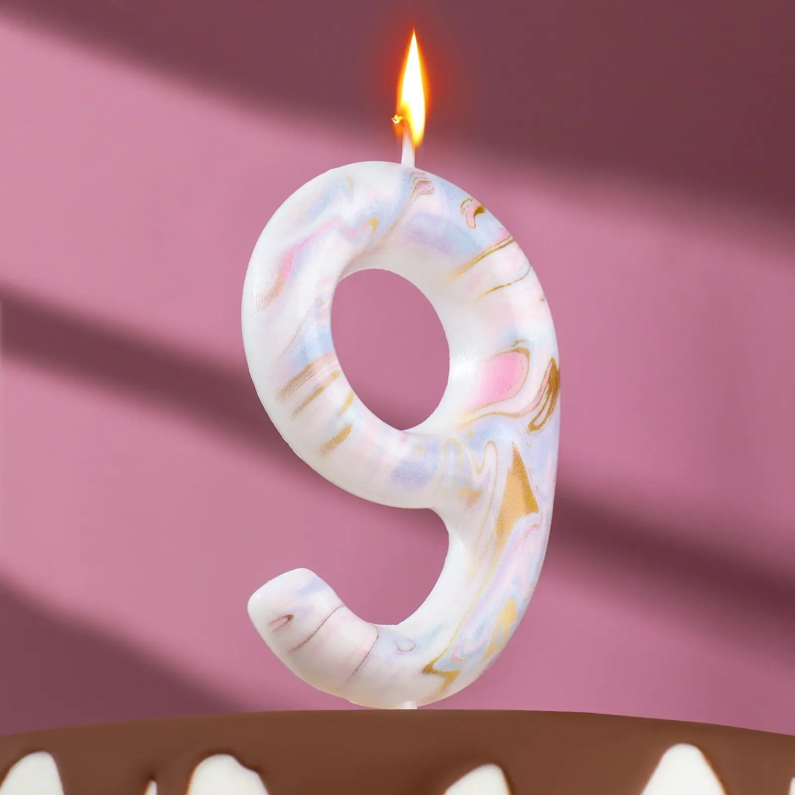 Свеча в торт Страна Карнавалия Белый мрамор цифра 9, гигант, 12,5 см