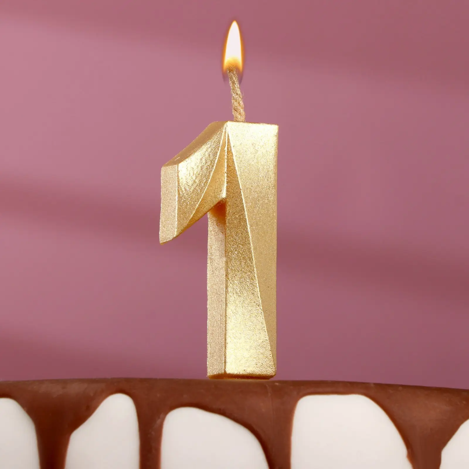 Свеча в торт Страна Карнавалия Грань, цифра 1, золотой металлик, 7,8 см