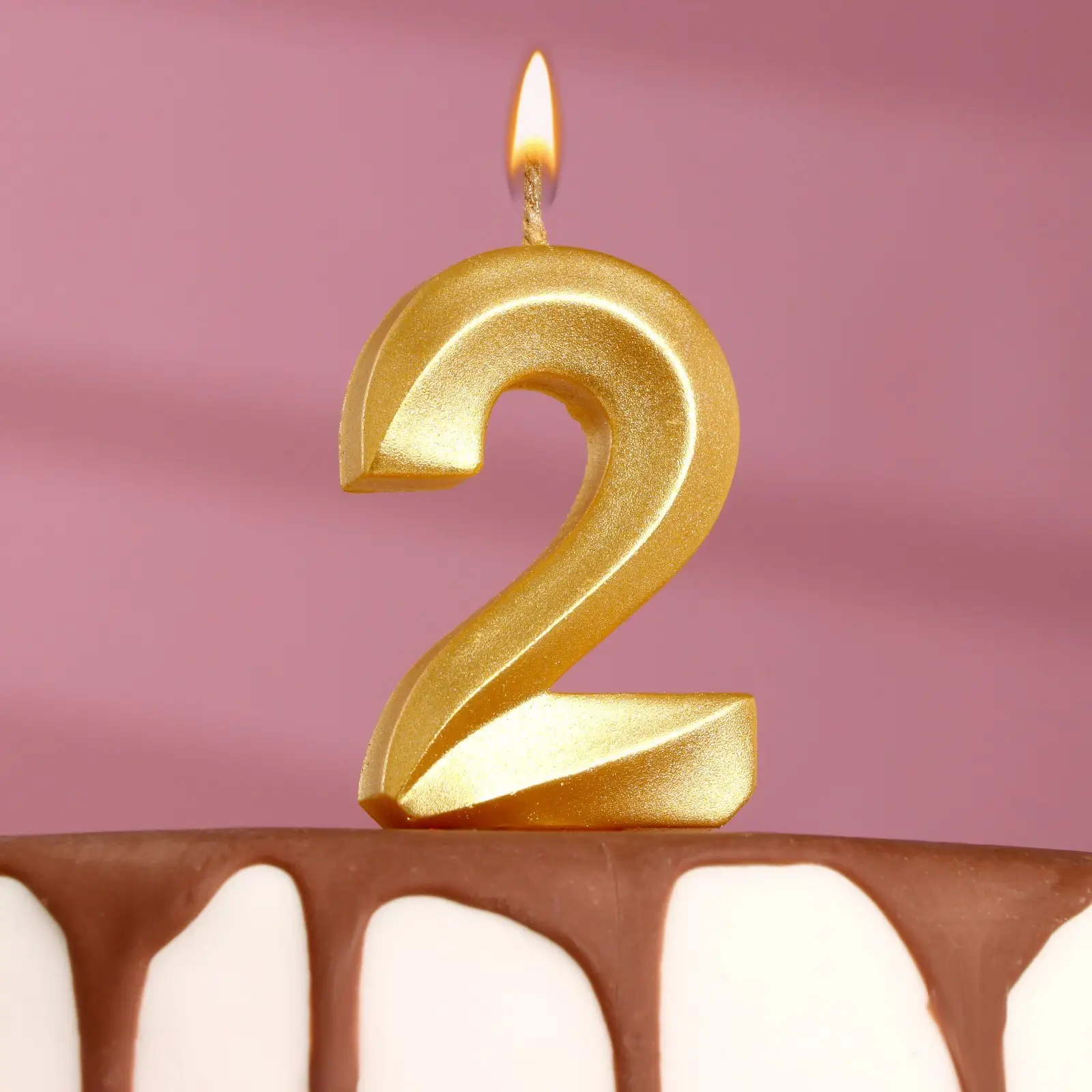 Свеча в торт Страна Карнавалия Грань, цифра 2, золотой металлик, 7,8 см