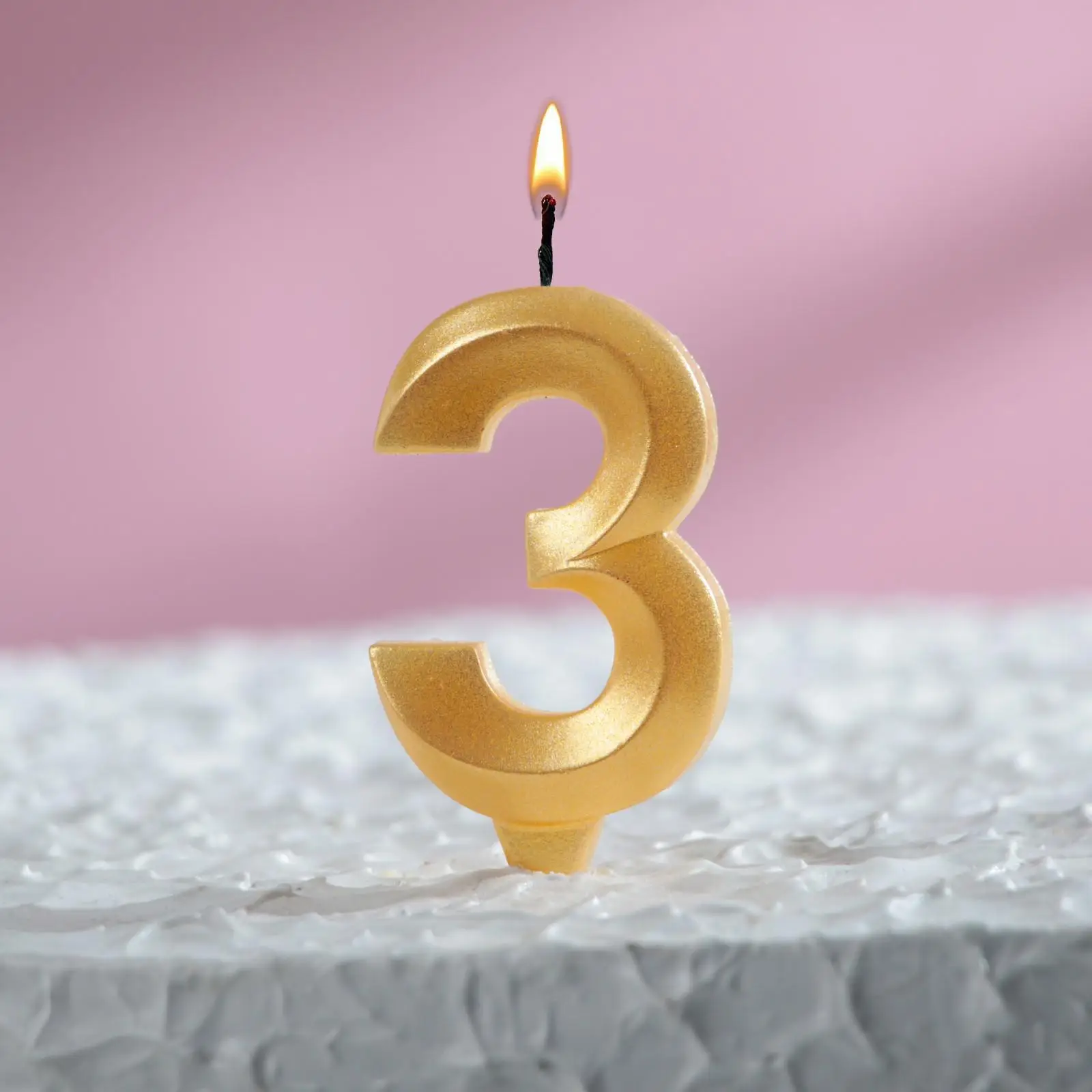 Свеча в торт Страна Карнавалия Грань, цифра 3, золотой металлик, 7,8 см