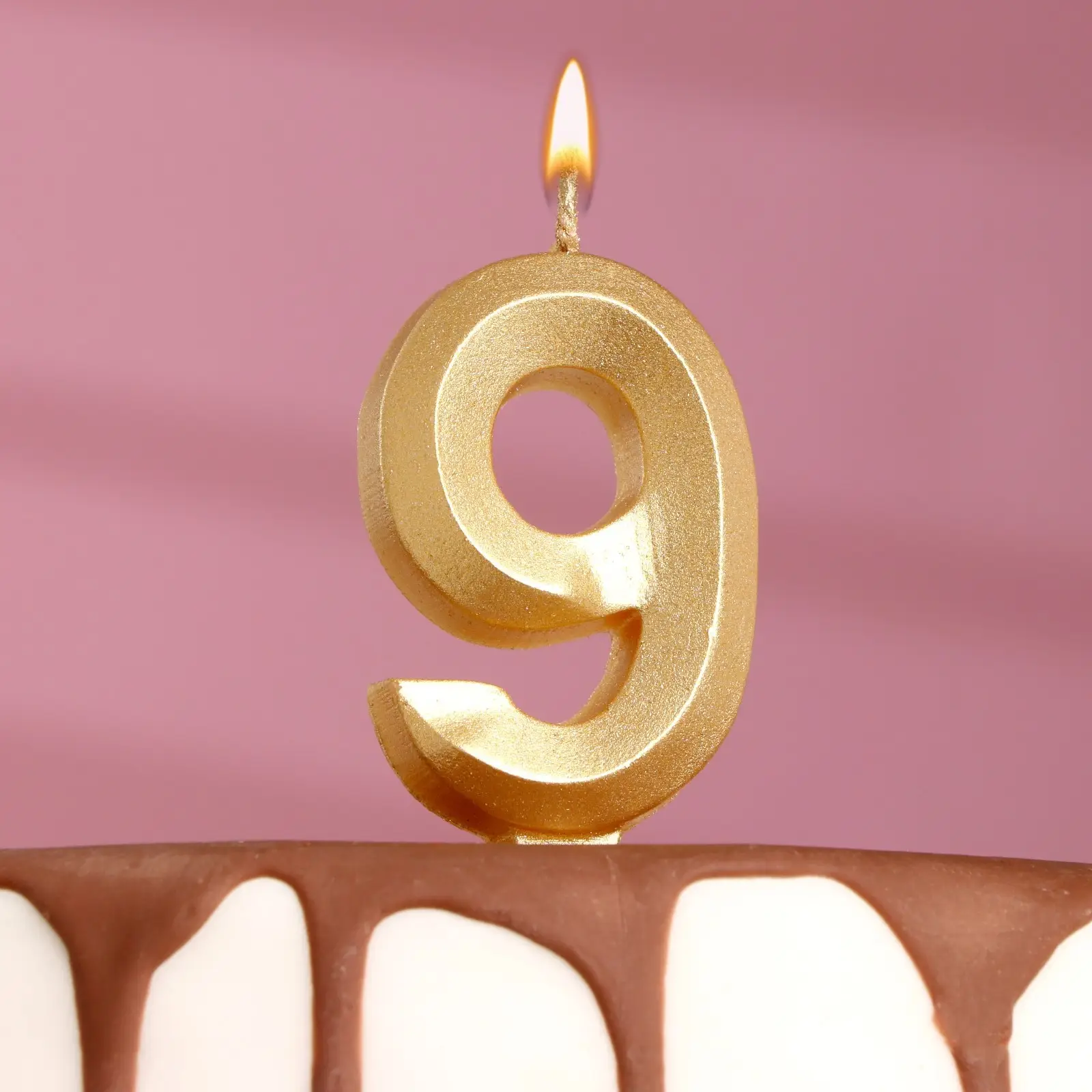 Свеча в торт Страна Карнавалия Грань, цифра 9, золотой металлик, 7,8 см