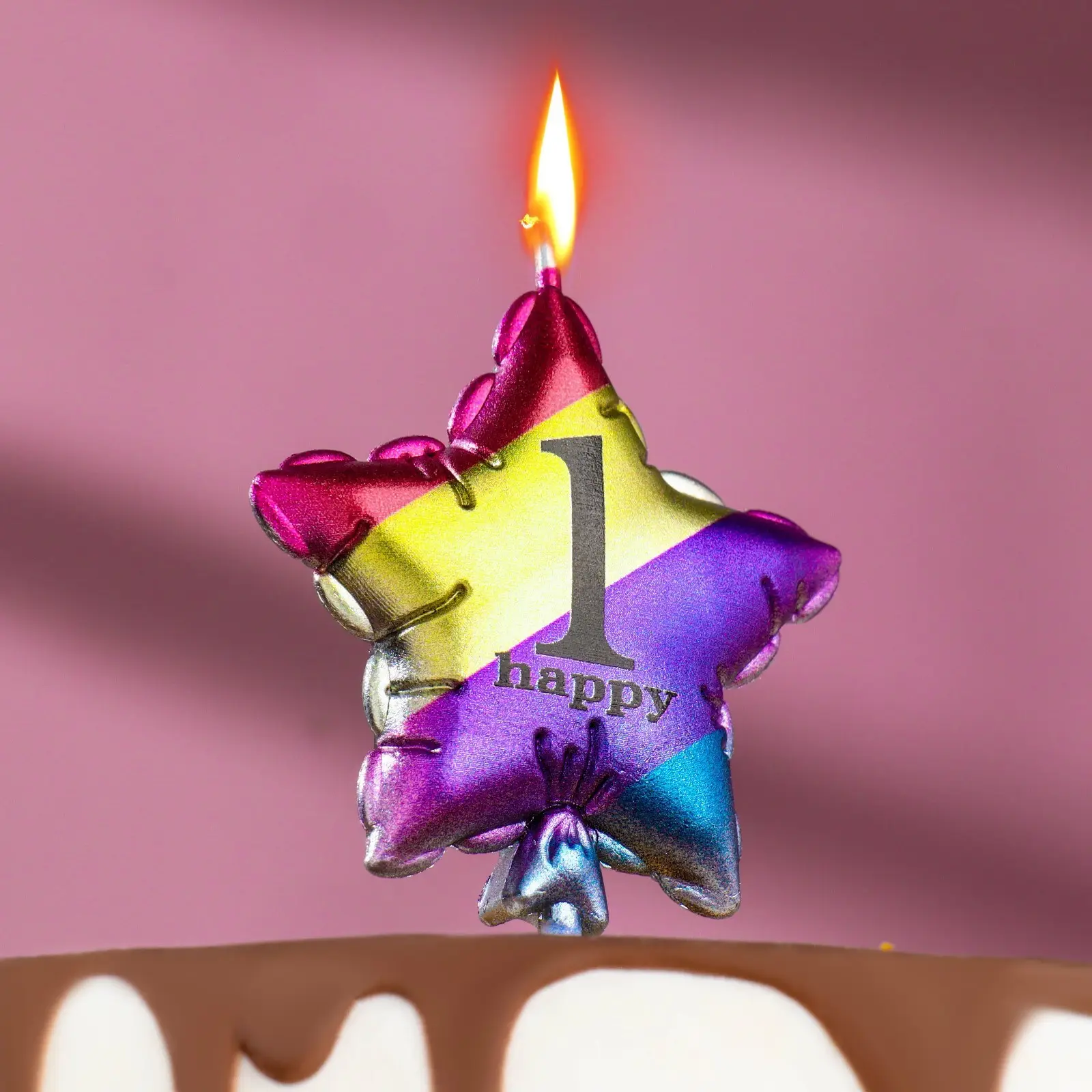 Свеча в торт Страна Карнавалия Воздушный шарик Звезда, цифра 1, 11.5 см