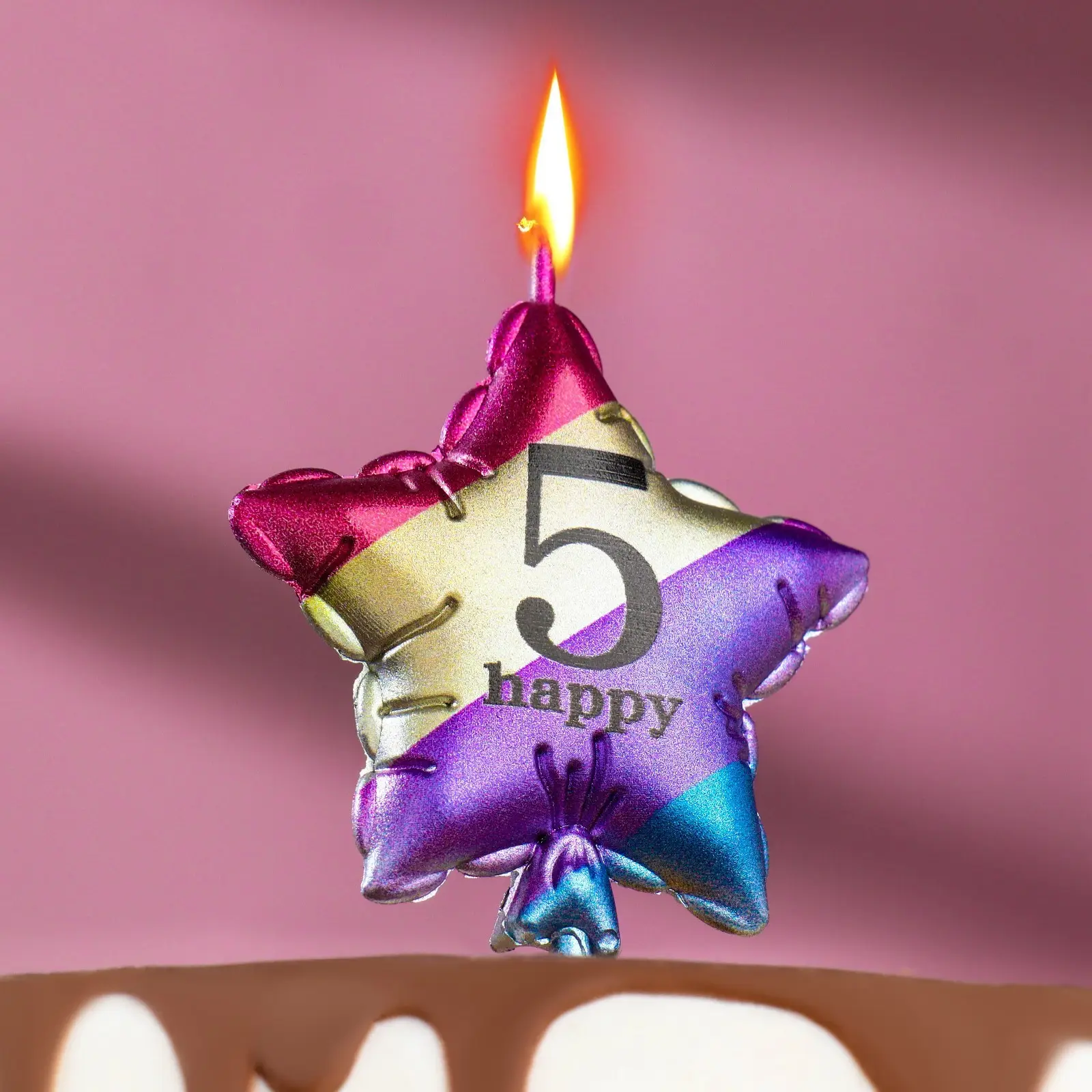 Свеча в торт Страна Карнавалия Воздушный шарик Звезда, цифра 5, 11.5 см