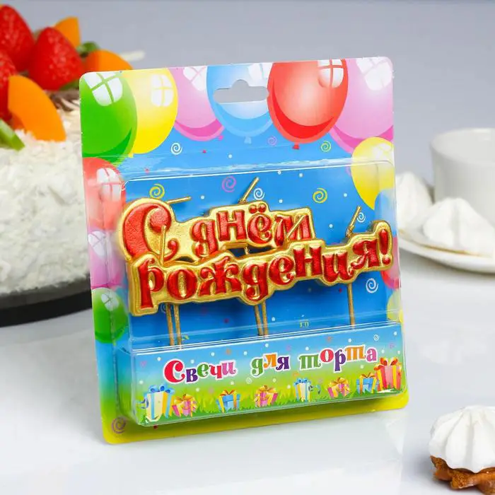 Свечи Страна Карнавалия для торта на шпажках С Днём Рождения, 10 см
