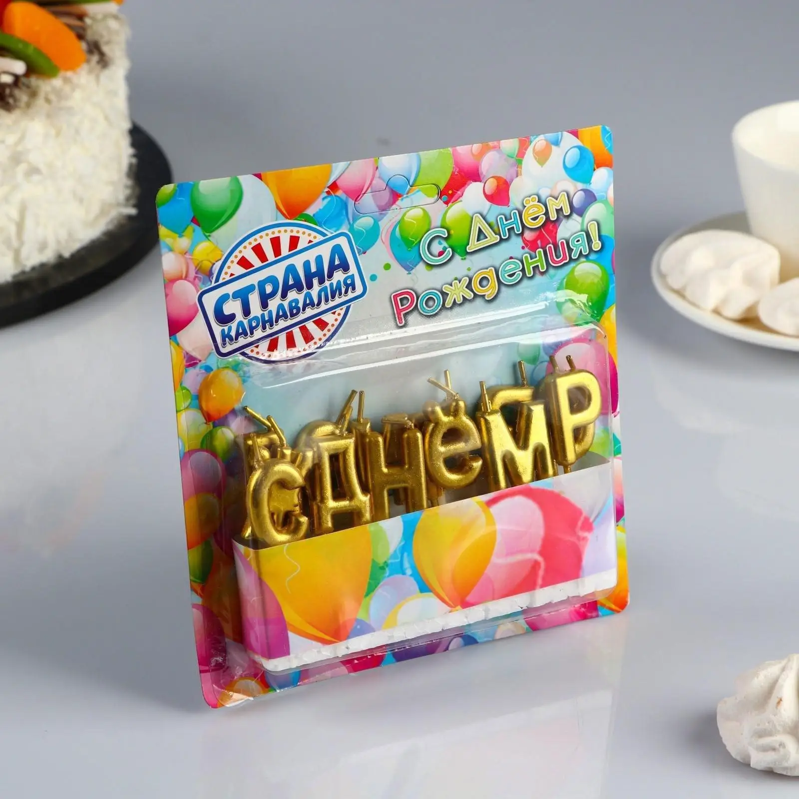 Свечи Страна Карнавалия для торта С Днём Рождения, золотые