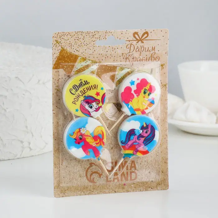 Свечи Страна Карнавалия в торт Пони, размер 1 свечи 4×4,4см, набор 4 шт