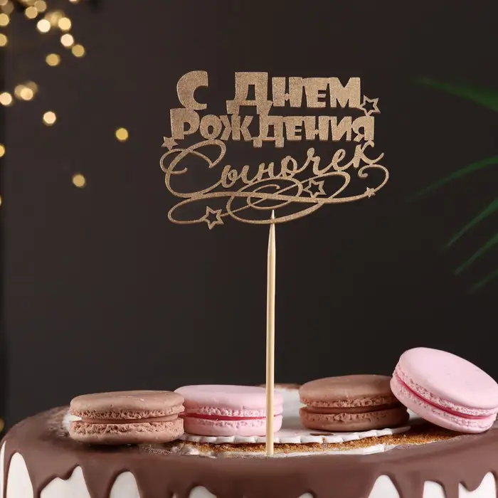 Топпер Страна Карнавалия С Днём Рождения, сыночек на подвесе Дарим Красиво, золотой