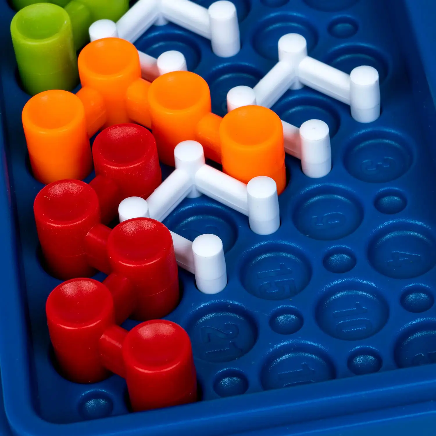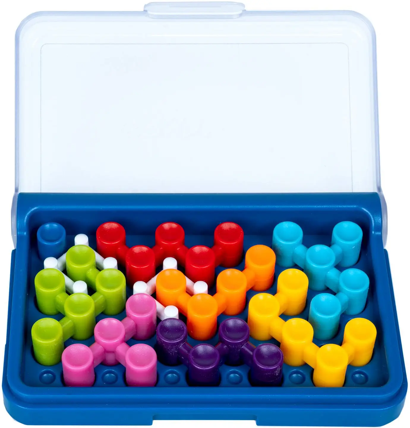 В комплект входят: коробка с игровым полем, 7 игровых деталей, буклет с правилами игры, заданиями и решениями.