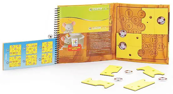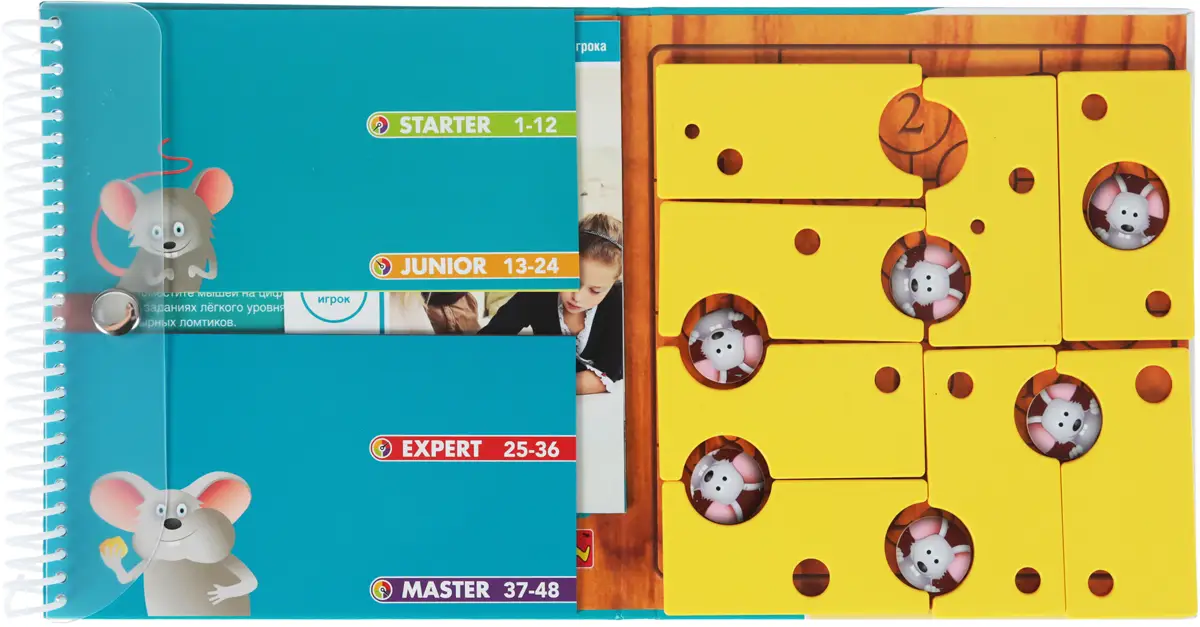 В комплекте: игровая книга с заданиями, 6 мышат, 8 кусочков сыра, инструкция.