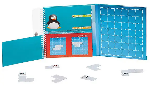 Игра выглядит в форме книги с магнитными карточками и заданиями.