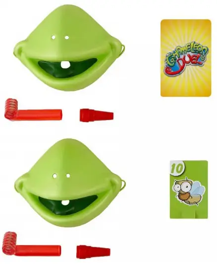 В эту игру можно играть вдвоем, каждому участнику выдается маска геккона с языком, с помощью которой необходимо как можно больше сбить карточек с мухами. Побеждает тот геккон, который съест больше мух, чем соперник.